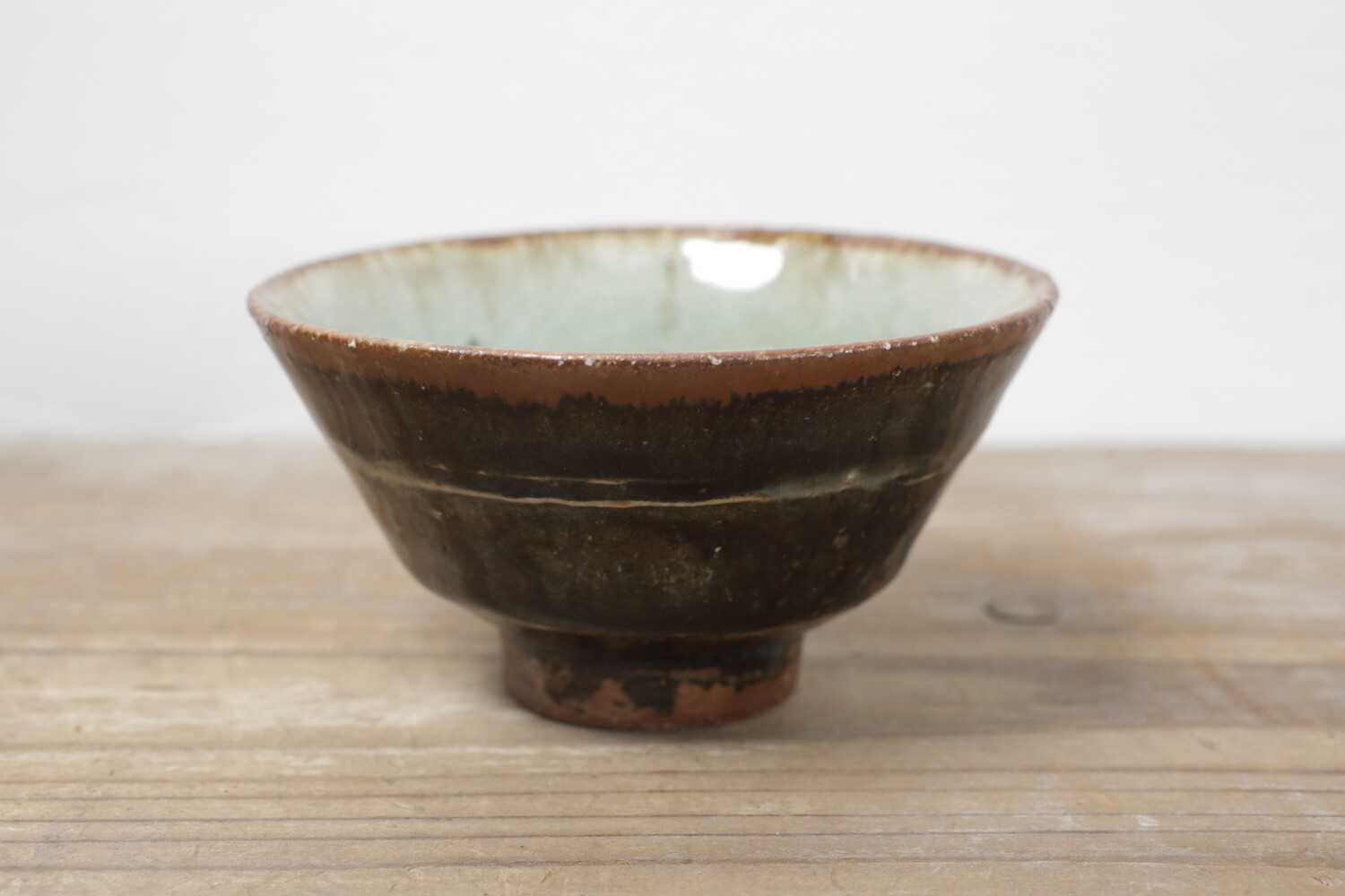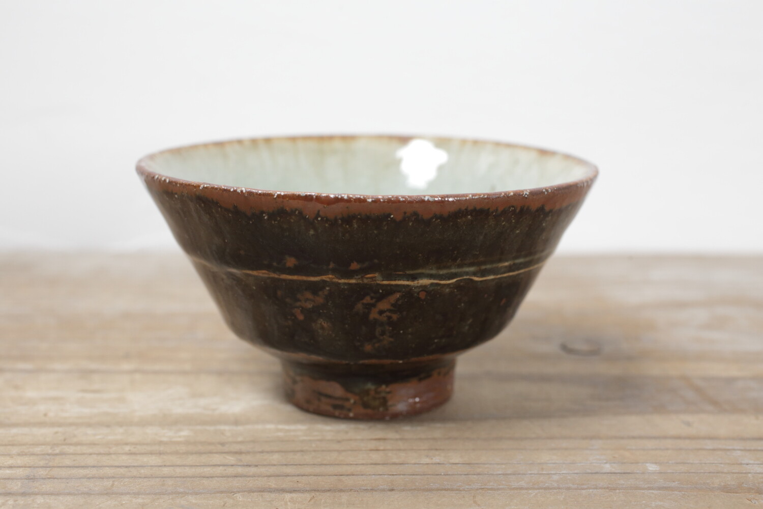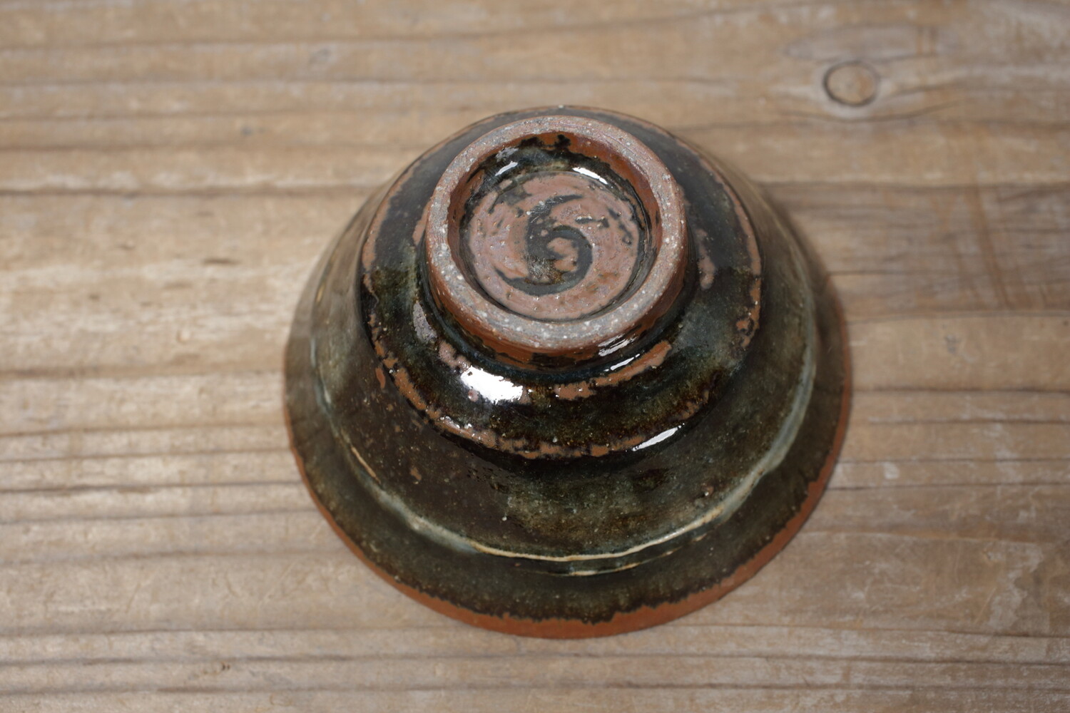 森山窯の定番色、呉須釉の飯碗。藍色と緑を足したような色合いですが、今回の窯では強く焼きあがったため黒みの強い色合いに仕上がりました。これもいい色だなとつい見惚れてしまいました。色合いの美しさはもちろんですが、手に持った時のおさまりがとても良い飯碗です。サイズ感は大き過ぎず小さ過ぎず、男女問わずお使い頂ける一般的な直径約11.7cmほどのサイズの飯碗です。