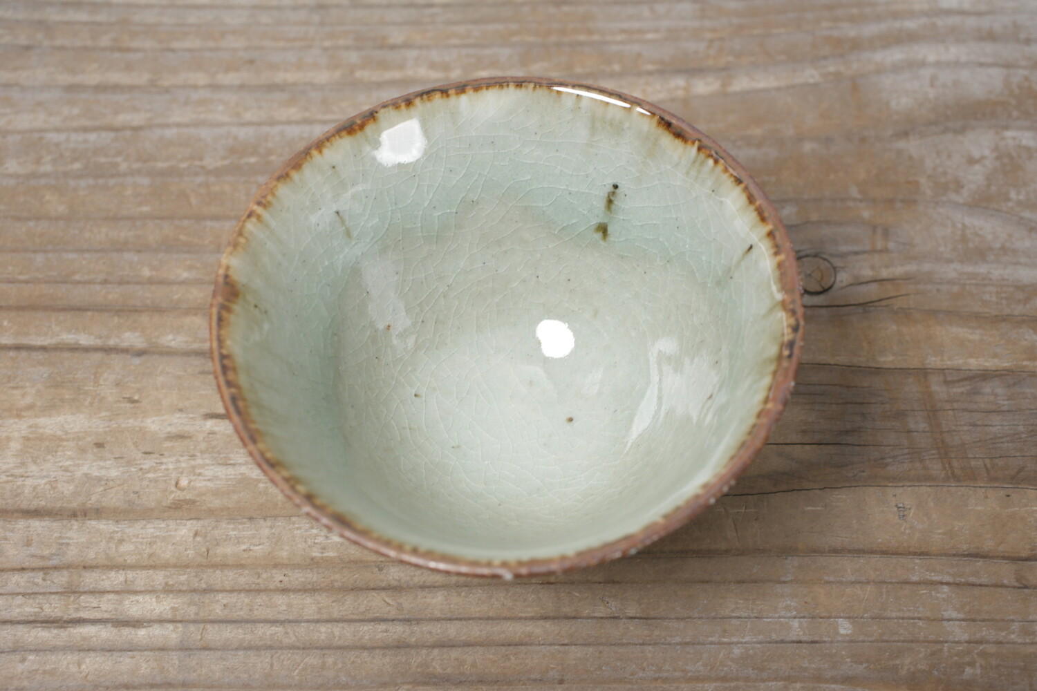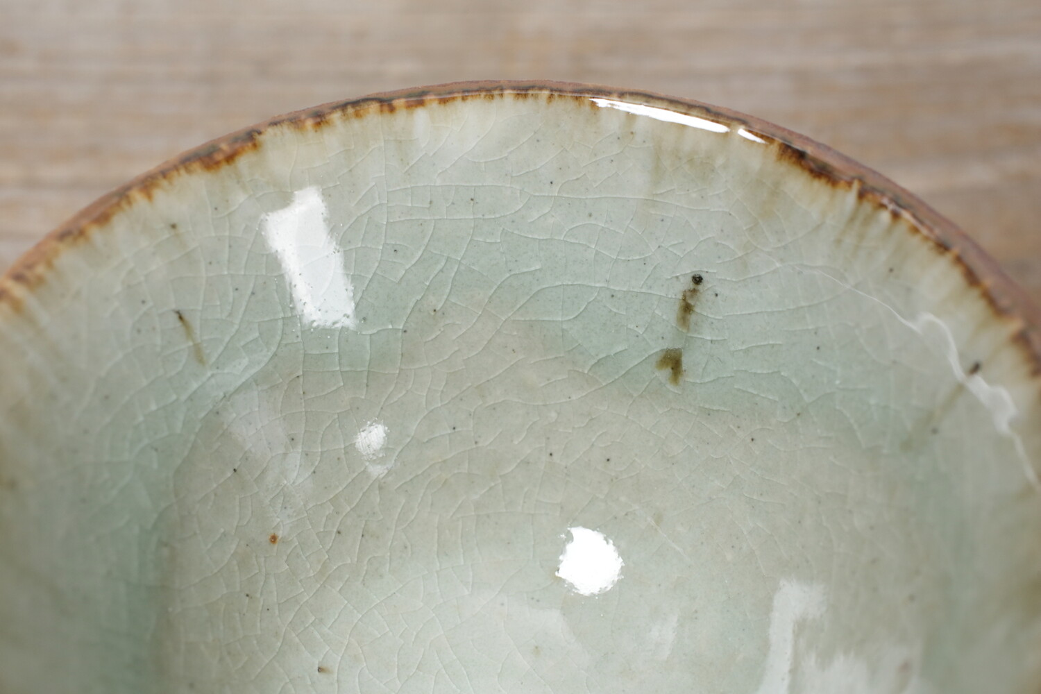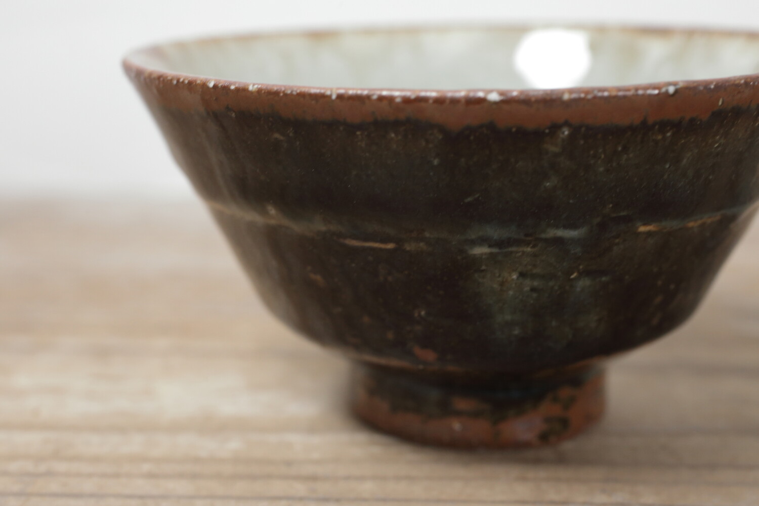 森山窯の定番色、呉須釉の飯碗。藍色と緑を足したような色合いですが、今回の窯では強く焼きあがったため黒みの強い色合いに仕上がりました。これもいい色だなとつい見惚れてしまいました。色合いの美しさはもちろんですが、手に持った時のおさまりがとても良い飯碗です。サイズ感は大き過ぎず小さ過ぎず、男女問わずお使い頂ける一般的な直径約11.7cmほどのサイズの飯碗です。