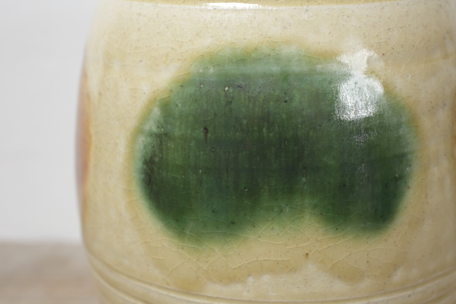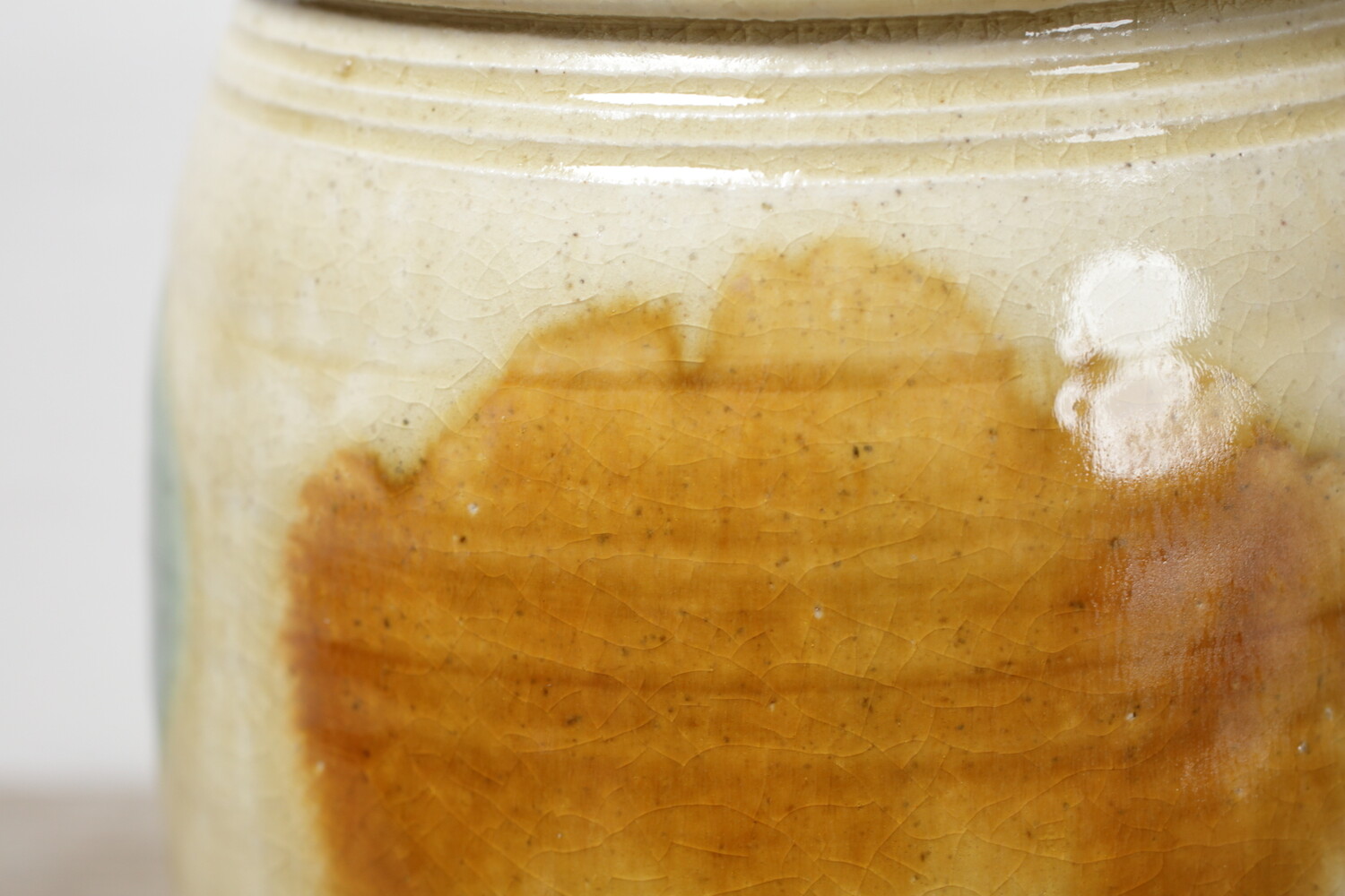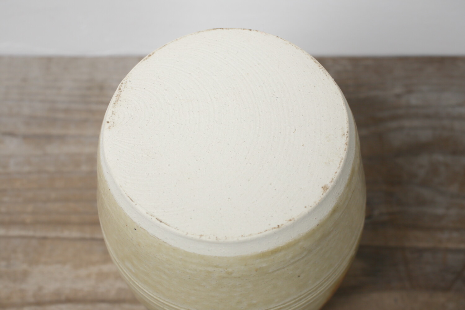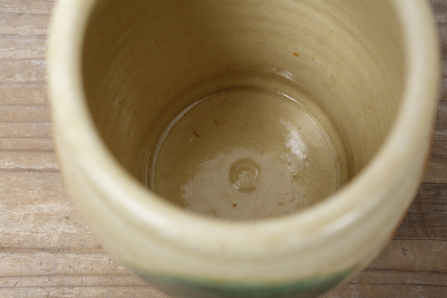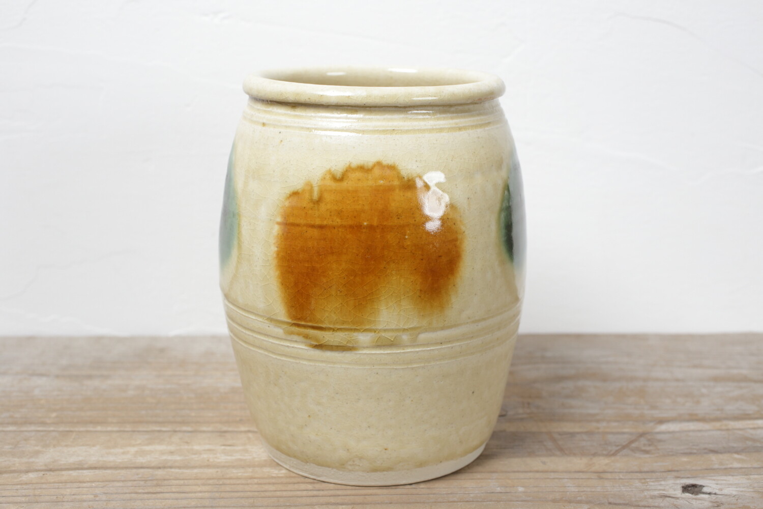 黄瀬戸にどこかポエティックで軽やかに二彩が描かれた美しいヘラ立て。高さは18cmほどで木べらや菜箸、すりこぎなど調理道具を入れてキッチンの目に入るところに置いても印象的ですし、切り花やハーブなどをどさっと生けても美しいでしょう。