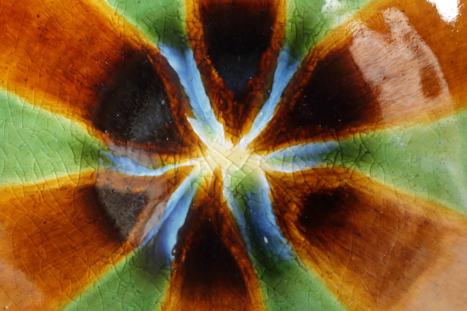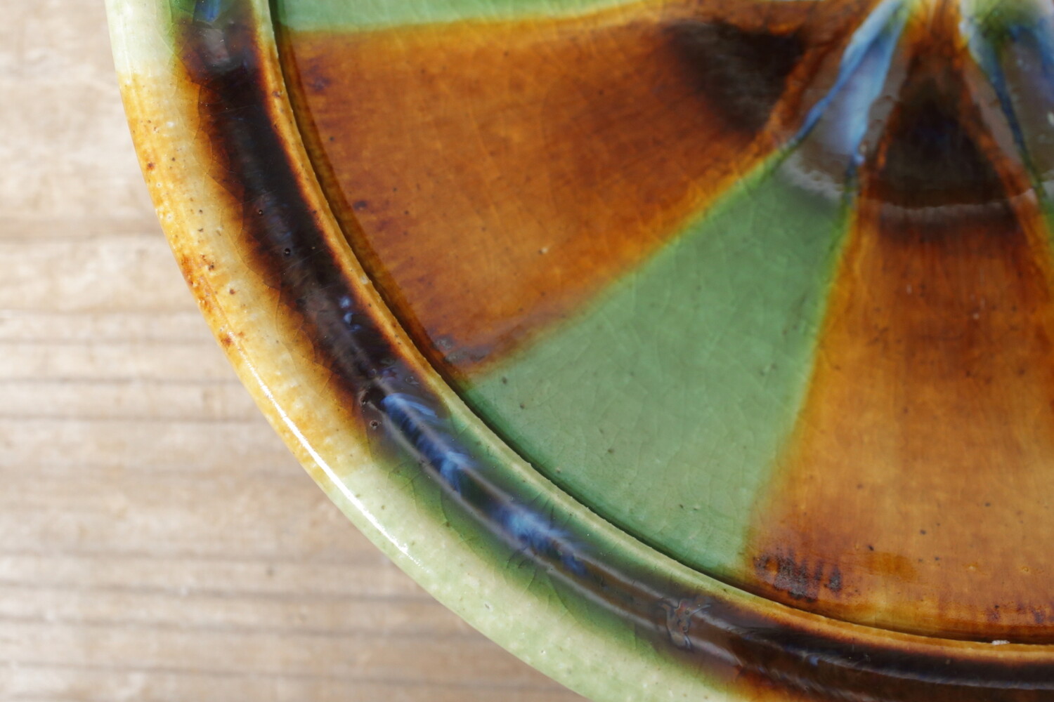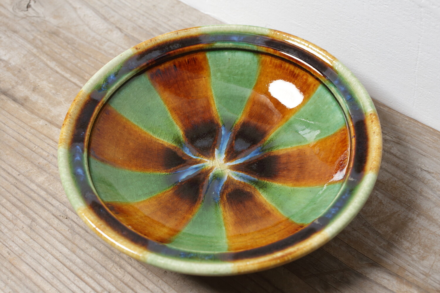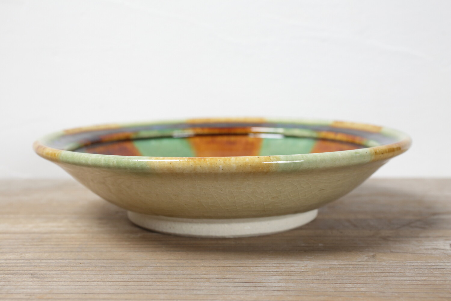 美しい宝石のように色鮮やかな緑と飴の二彩流し皿。元気な時、日差しが気持ちのいい時、お休みの心が晴れやかな日にもいいですが、ちょっと元気がない時や疲れた時にも元気をもらえるような二彩皿です。大きさは直径24.8cmにほんの少し深さがありますので、パスタ皿にしてもご家族のおかずにもいいでしょう。
