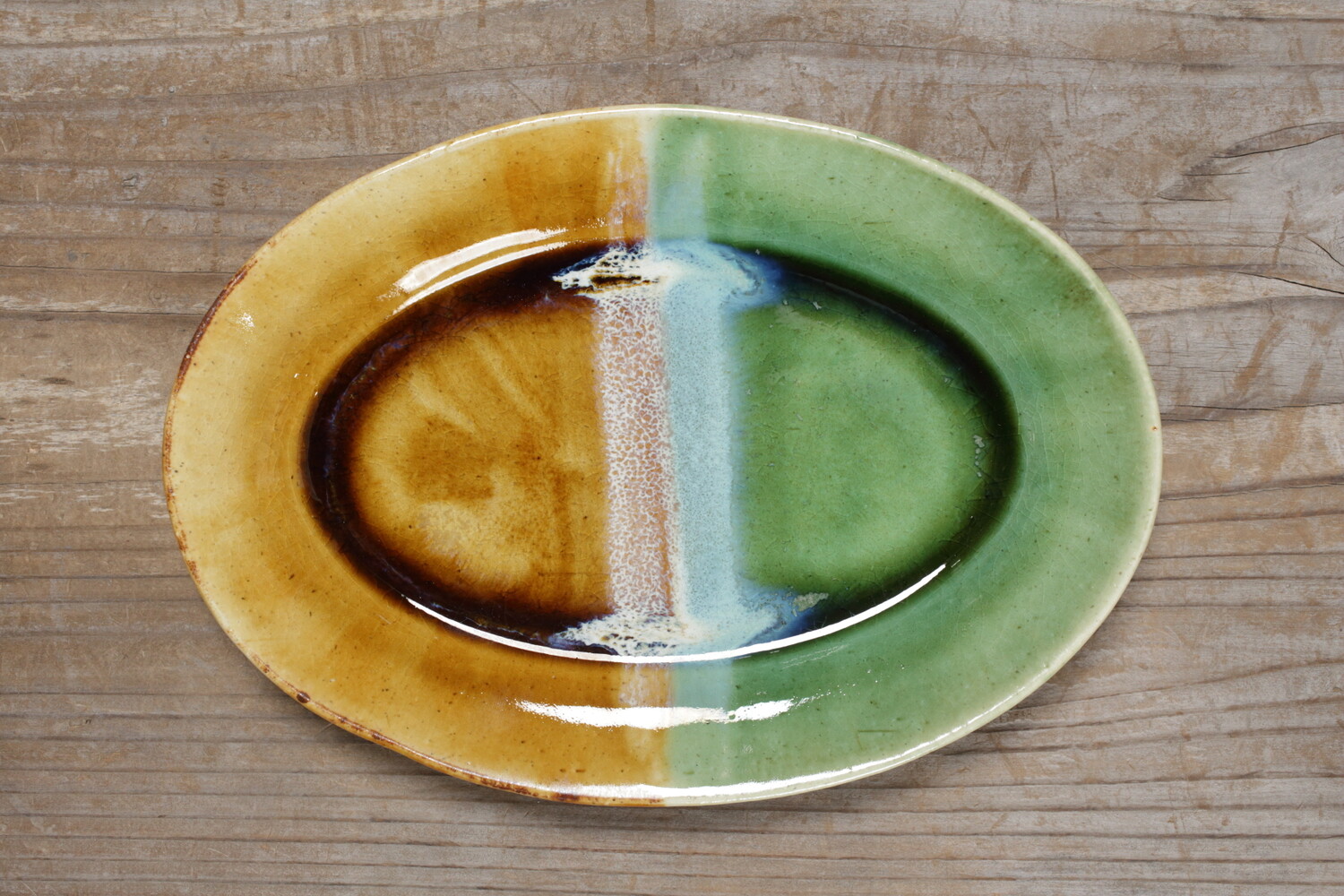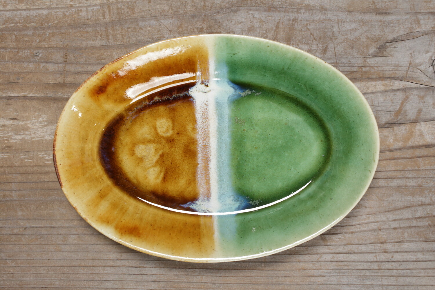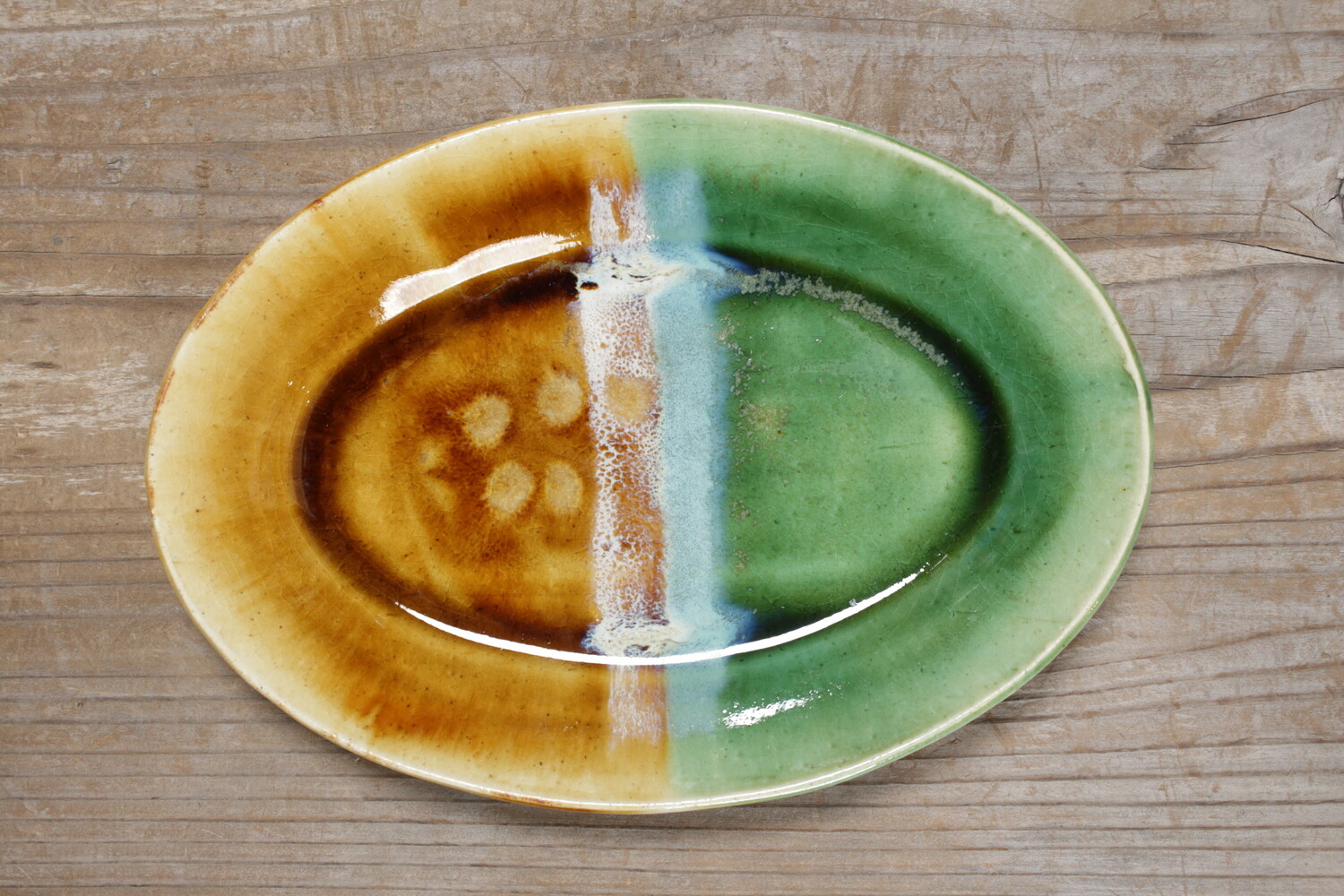 掛け分けオーバル皿 緑・飴