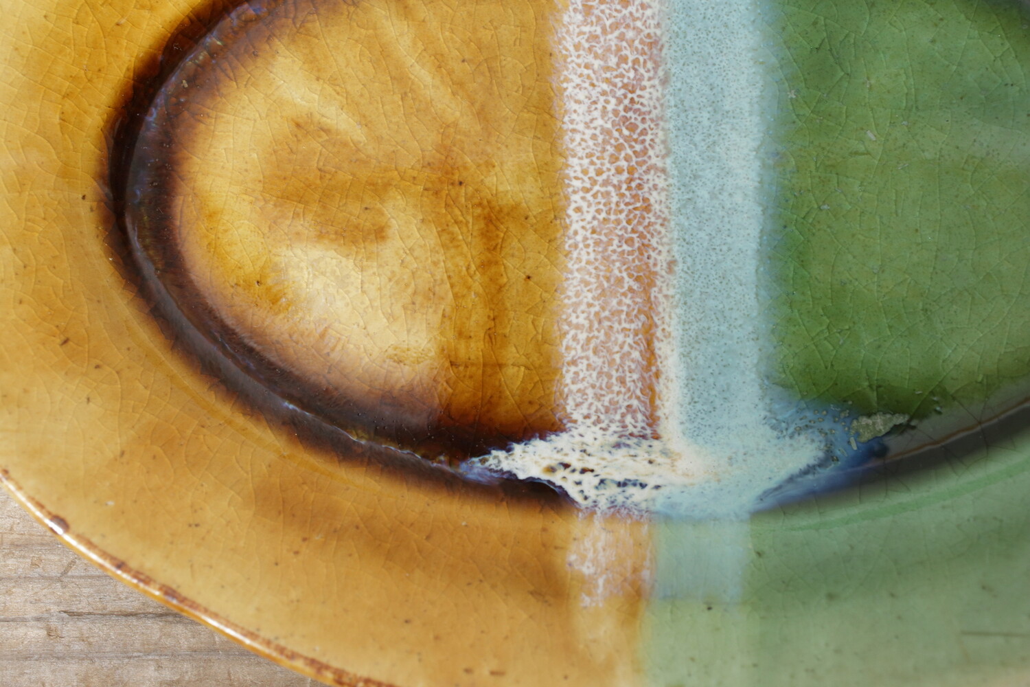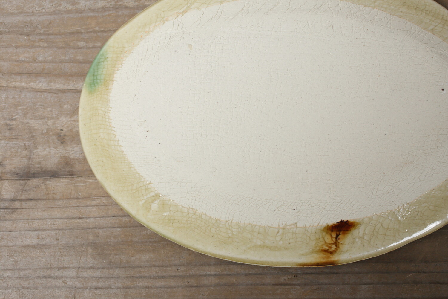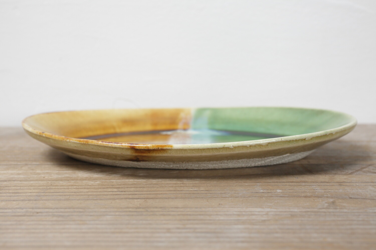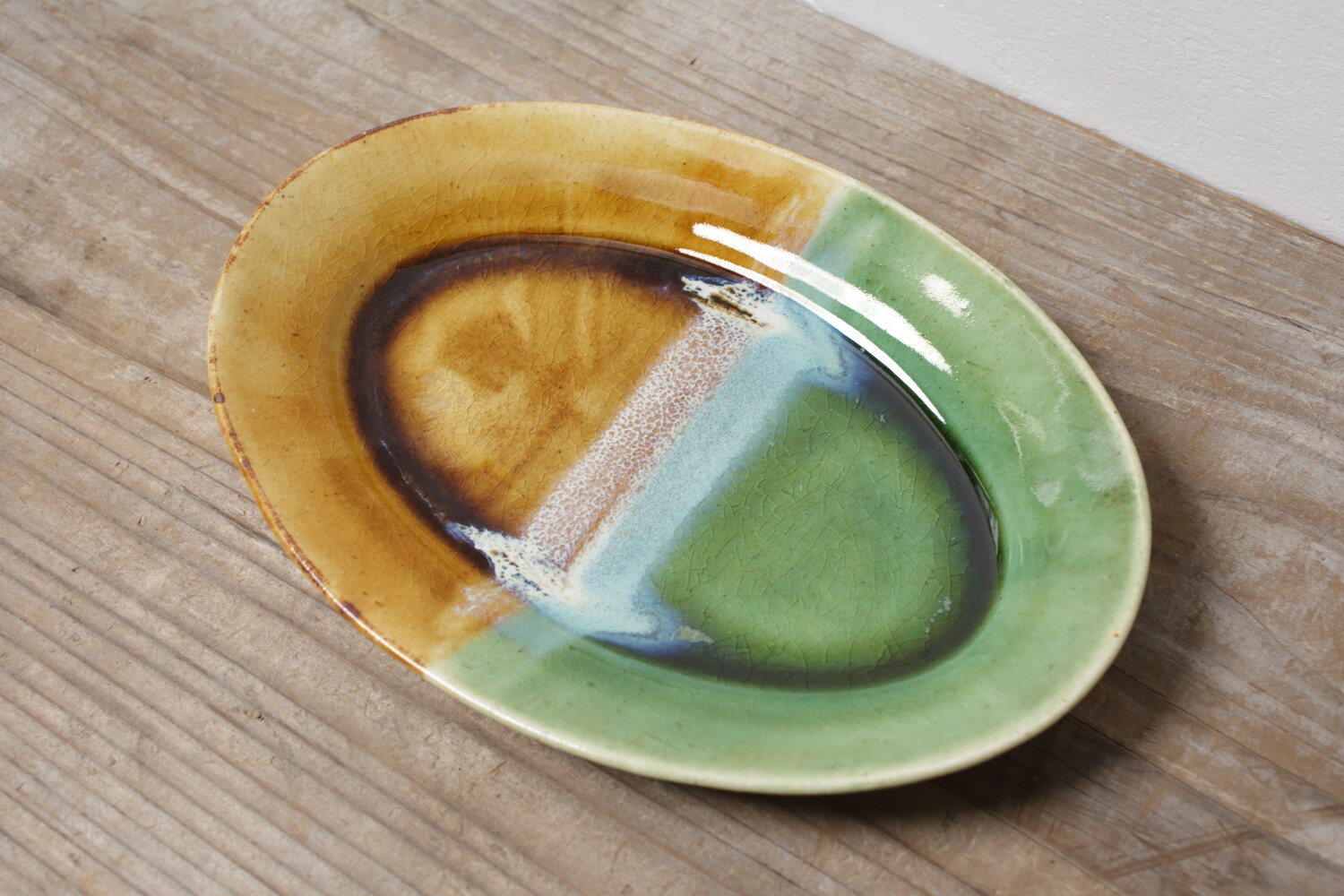 掛け分けオーバル皿 緑・飴