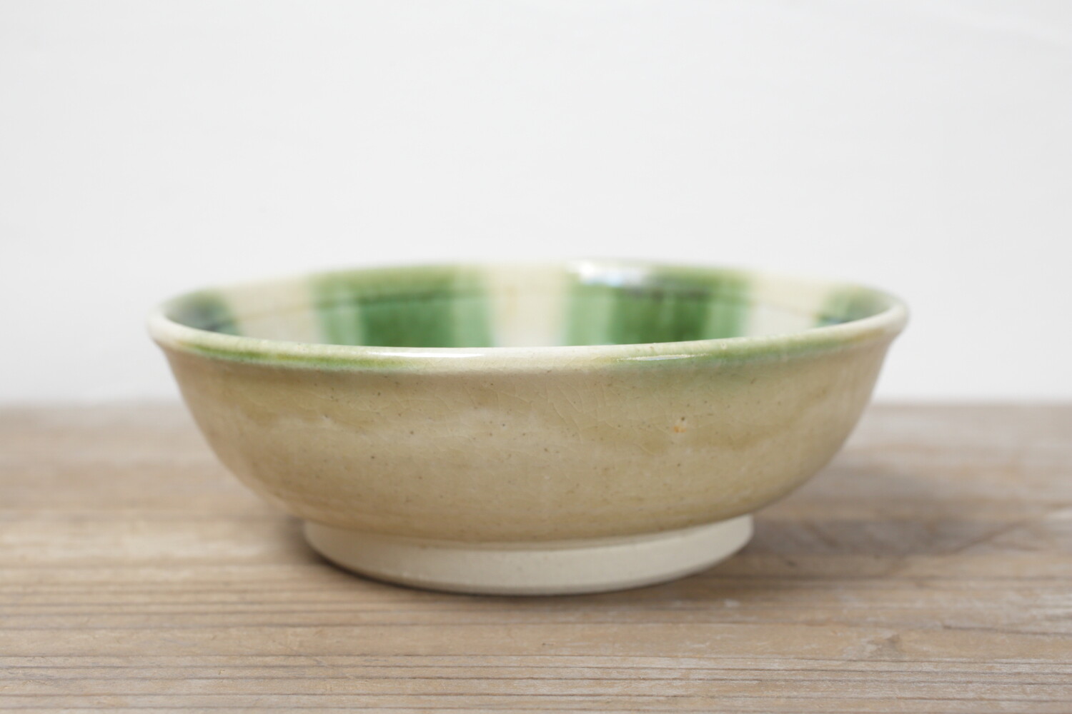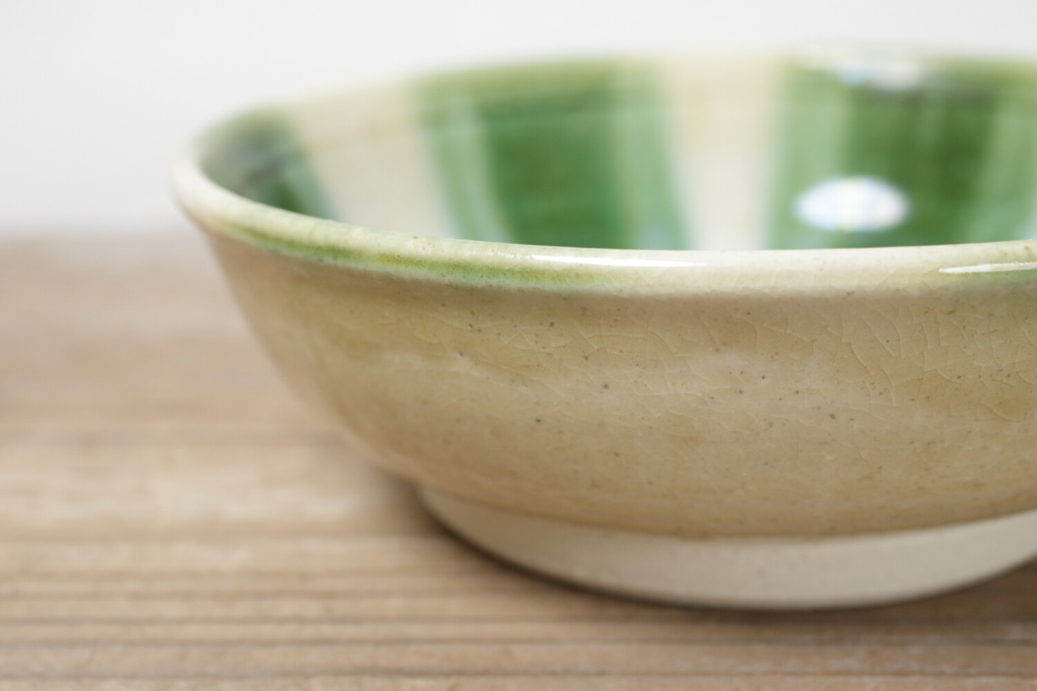 スープ鉢として作られた直径16cmほどの中鉢。カリフラワーやとうもろこしのポタージュなども合いそうですね。横から見える三彩が美しいアクセントとなってくれることでしょう。お鍋の取り鉢(すいとん)やすき焼き、サラダの取り鉢にもいい大きさです。