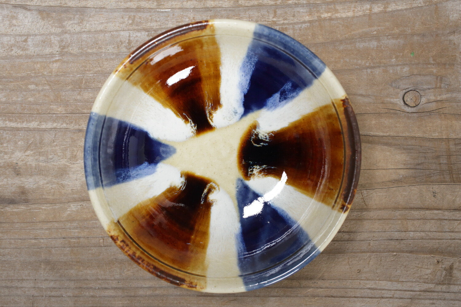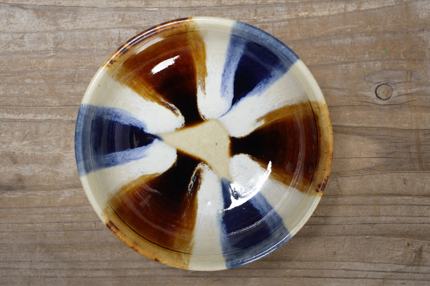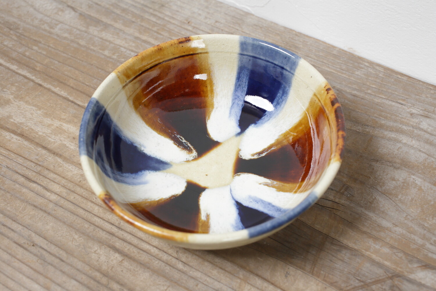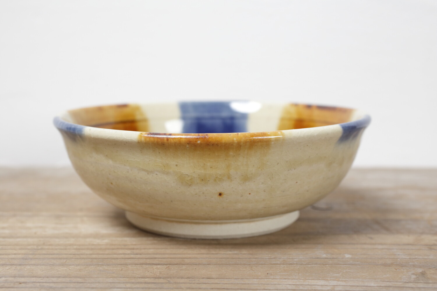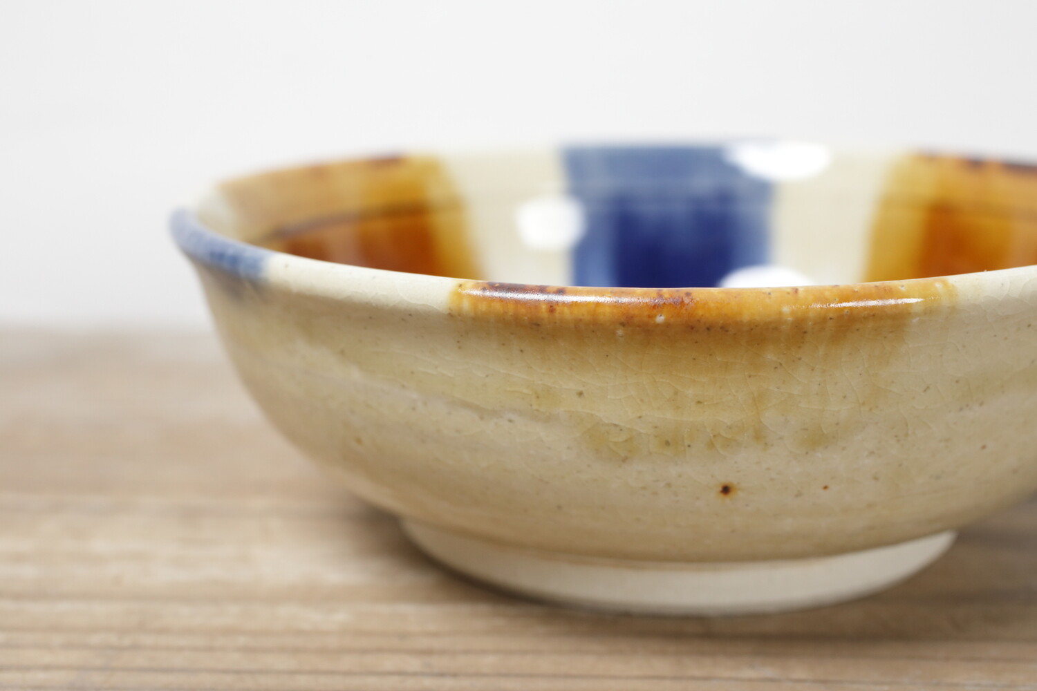 スープ鉢として作られた直径16cmほどの中鉢。カリフラワーやとうもろこしのポタージュなども合いそうですね。横から見える三彩が美しいアクセントとなってくれることでしょう。お鍋の取り鉢(すいとん)やすき焼き、サラダの取り鉢にもいい大きさです。
