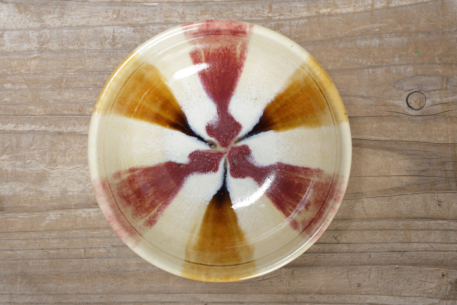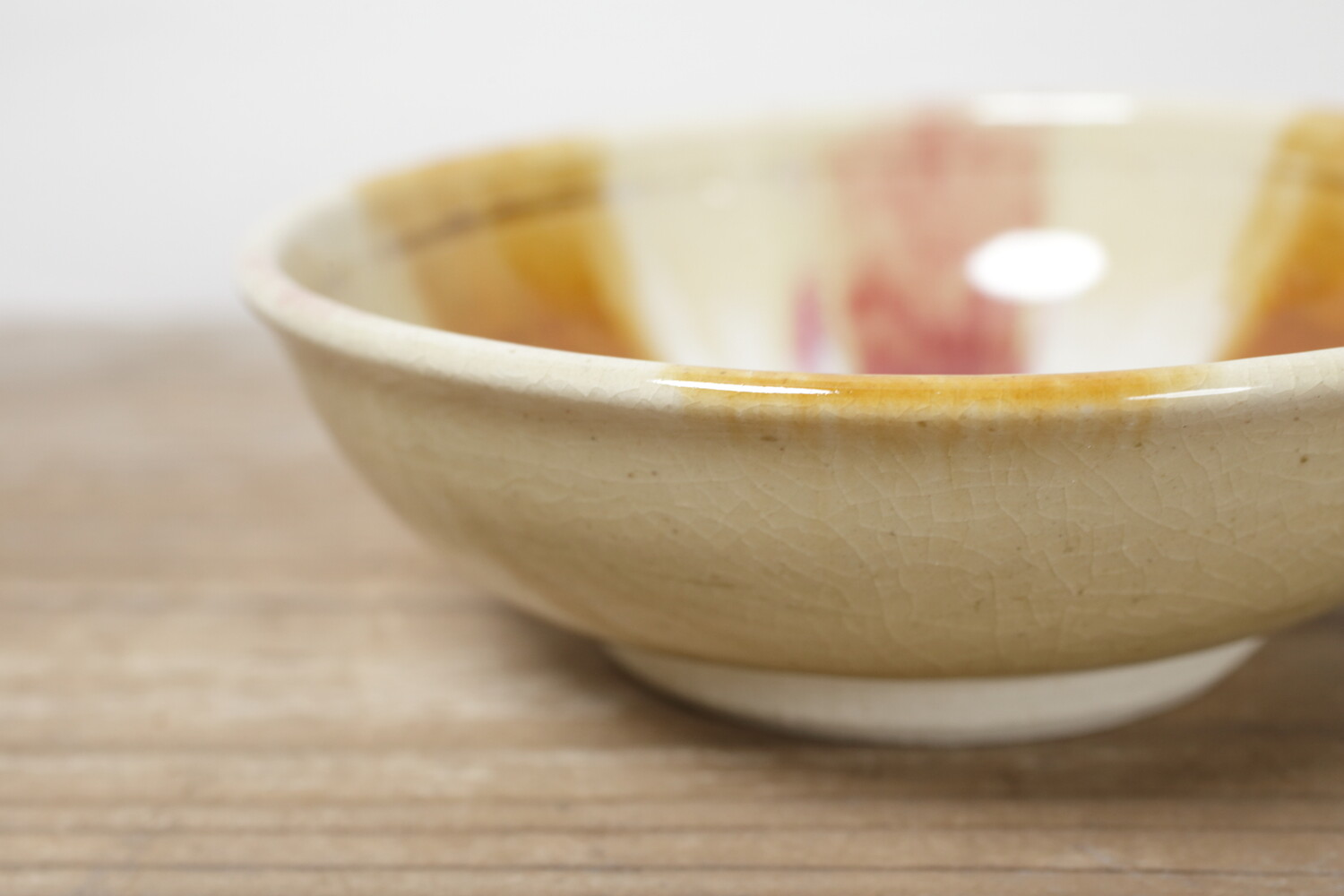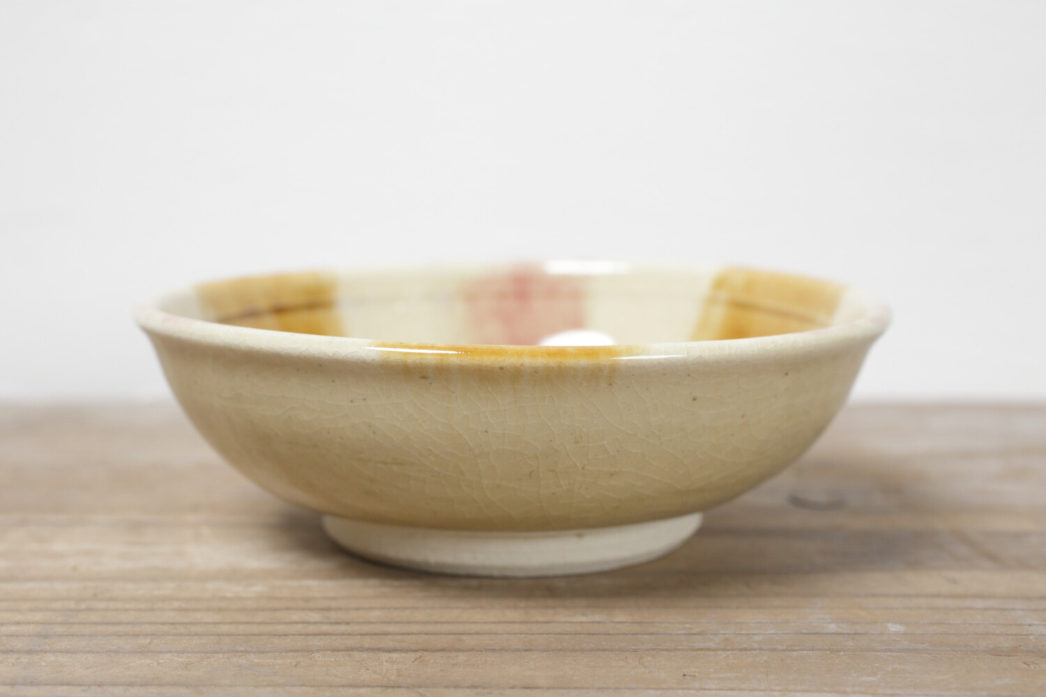 スープ鉢 小サイズとして作られた14.5cmほどの丸鉢。カリフラワーやとうもろこしのポタージュなども合いそうですね。三彩が美しいアクセントとなってくれることでしょう。すき焼きやサラダの取り鉢、デザート鉢にもいい大きさです。