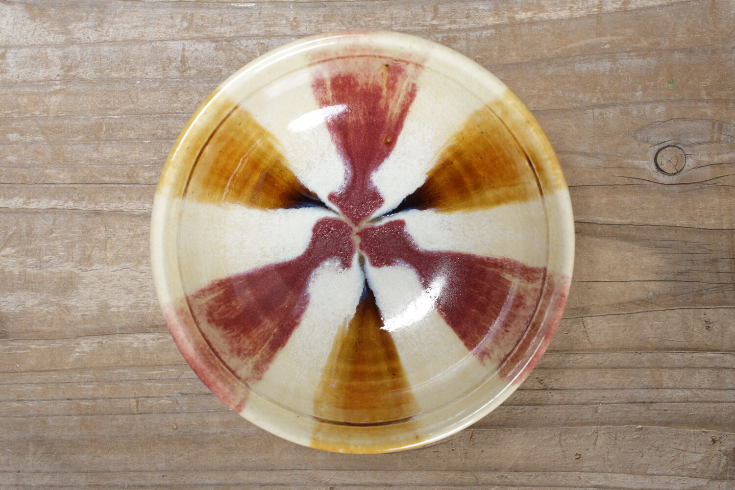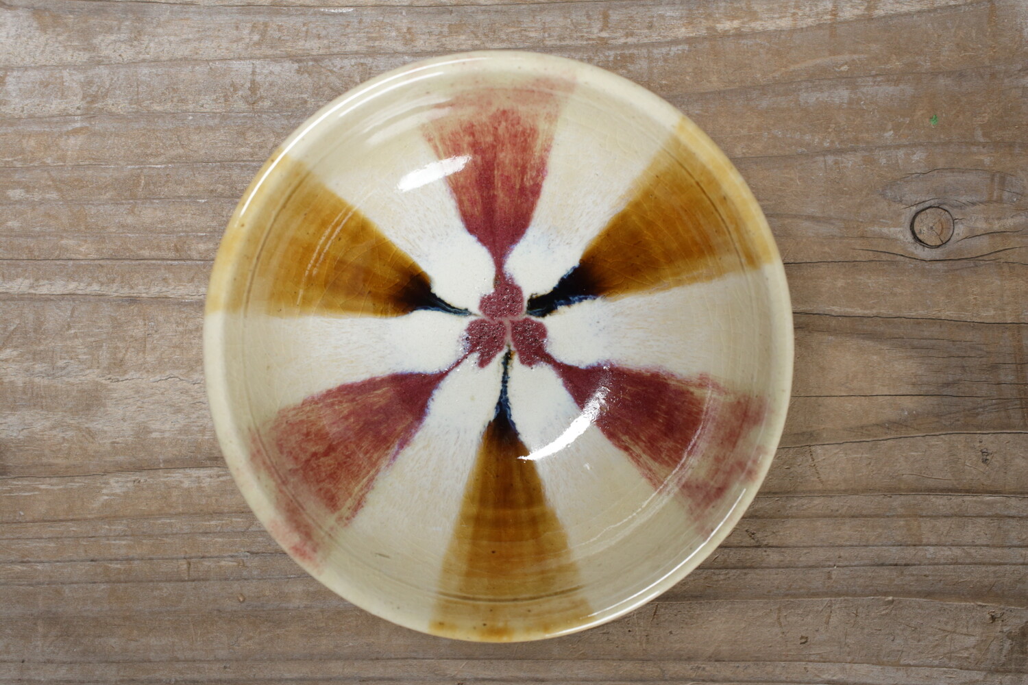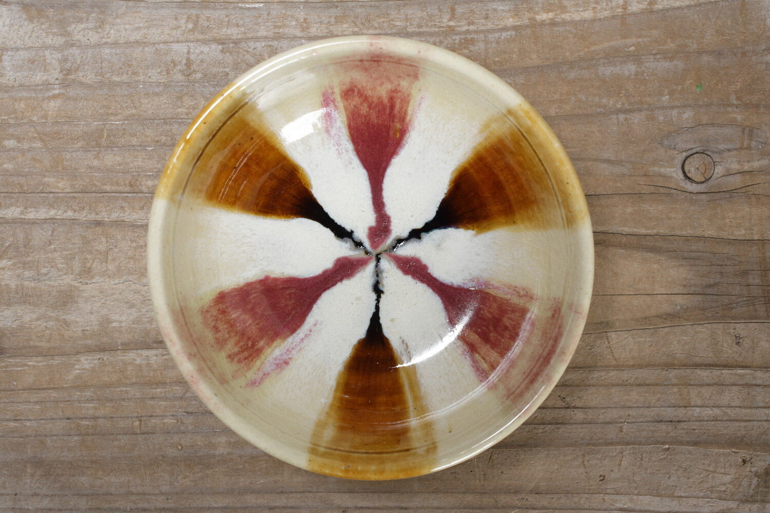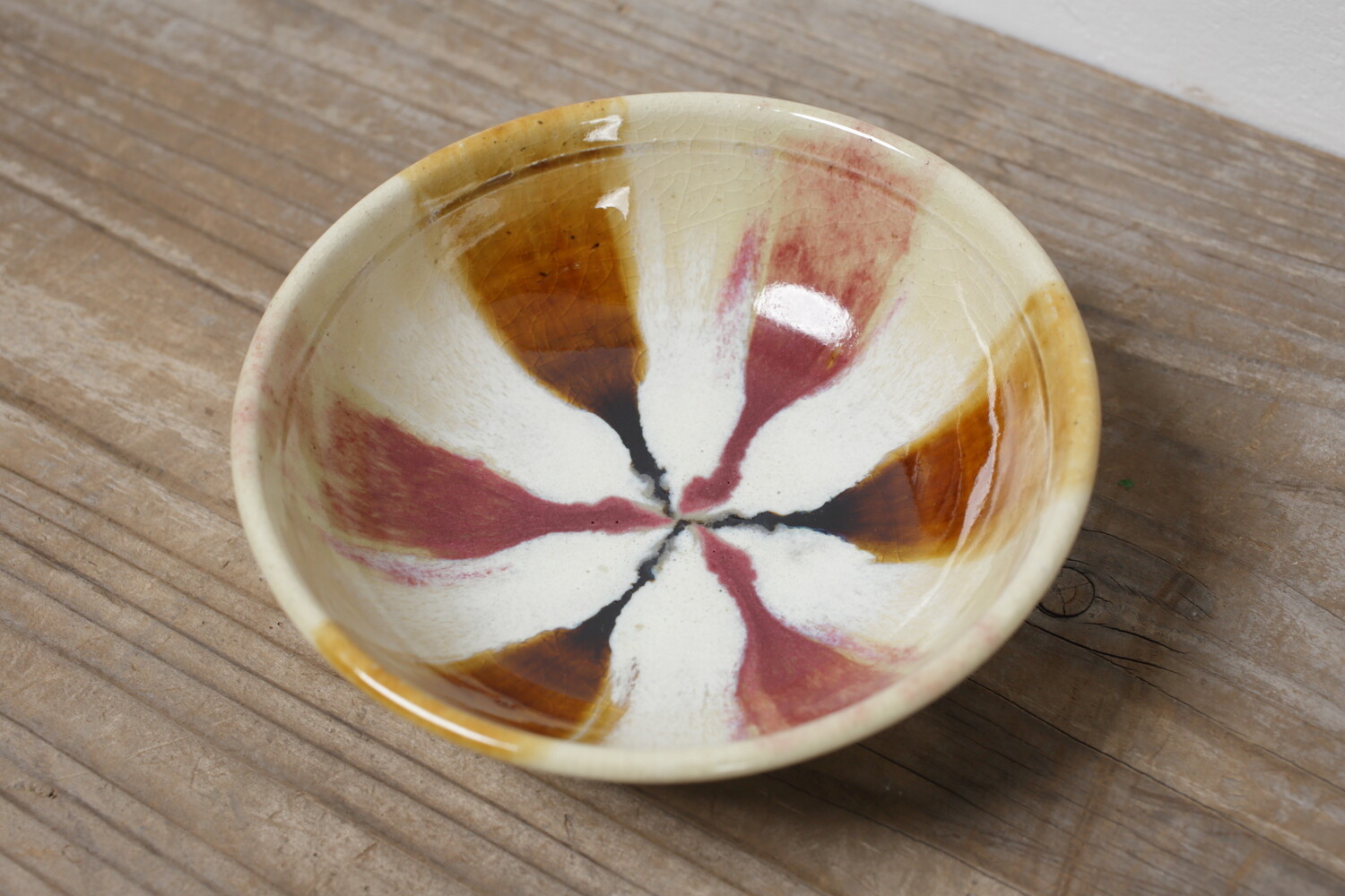 スープ鉢 小サイズとして作られた14.5cmほどの丸鉢。カリフラワーやとうもろこしのポタージュなども合いそうですね。三彩が美しいアクセントとなってくれることでしょう。すき焼きやサラダの取り鉢、デザート鉢にもいい大きさです。
