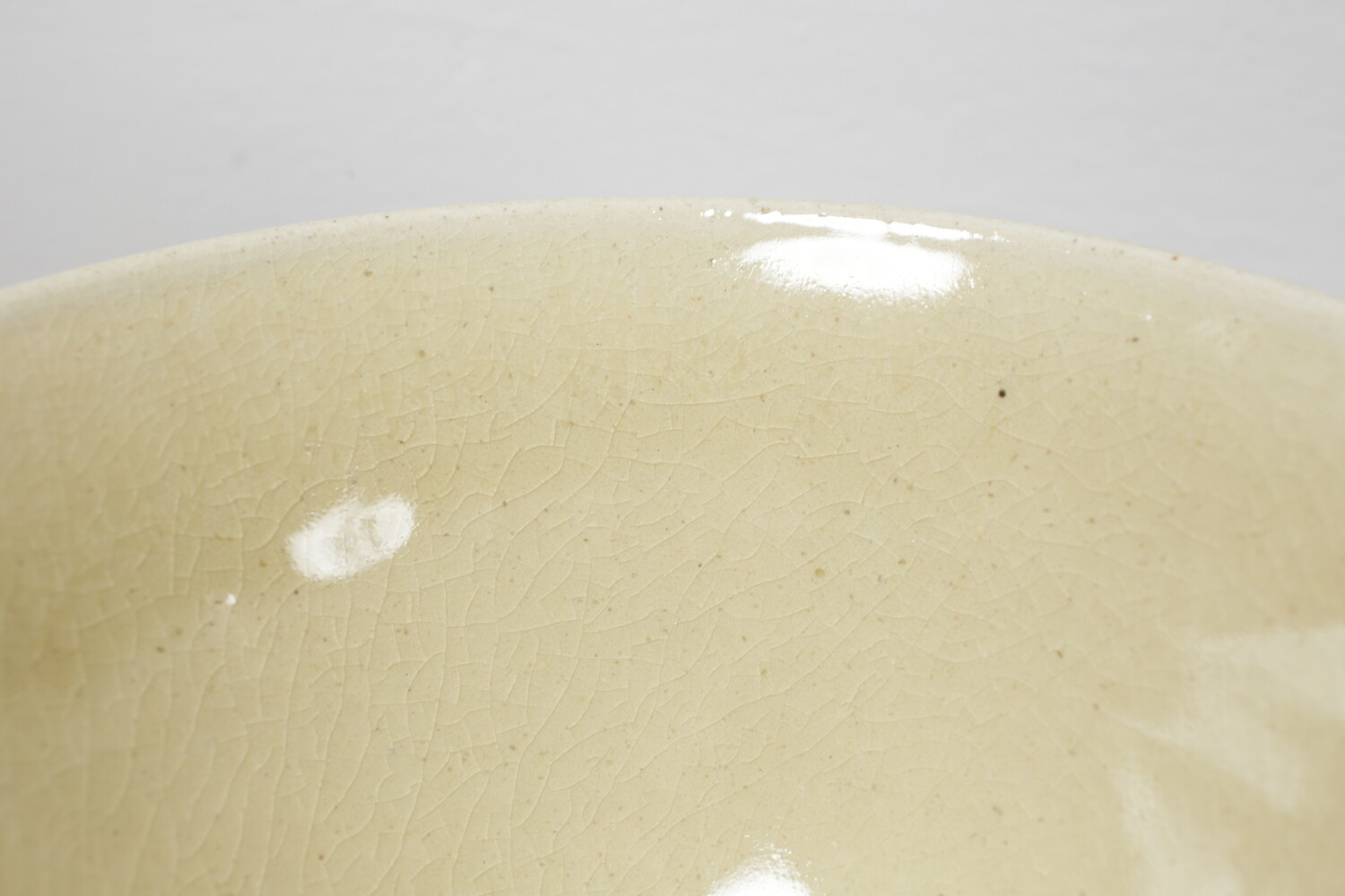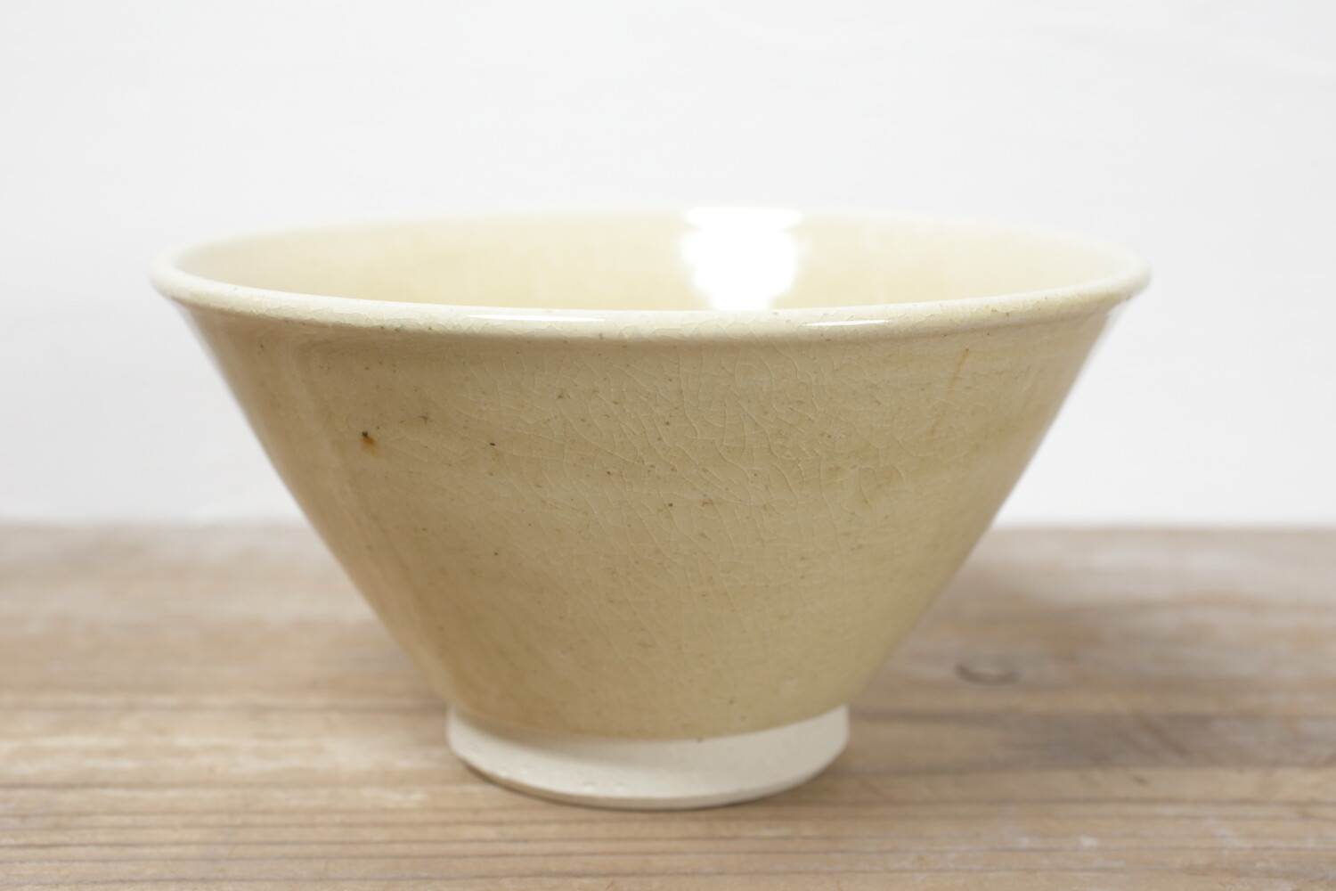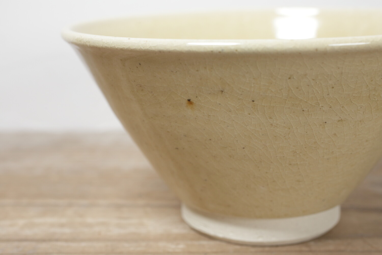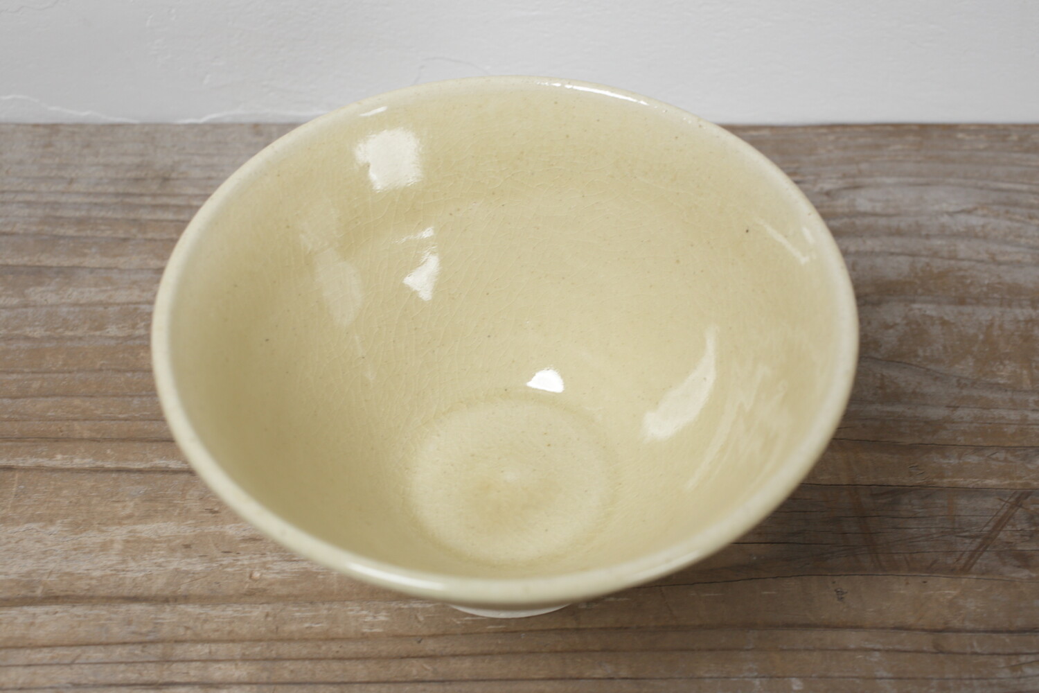 直径17cmほどの黄瀬戸丼は、高台から縁にかけて反り返るように広がる扇形の丼です。ラーメンやお蕎麦などにもいいでしょう。