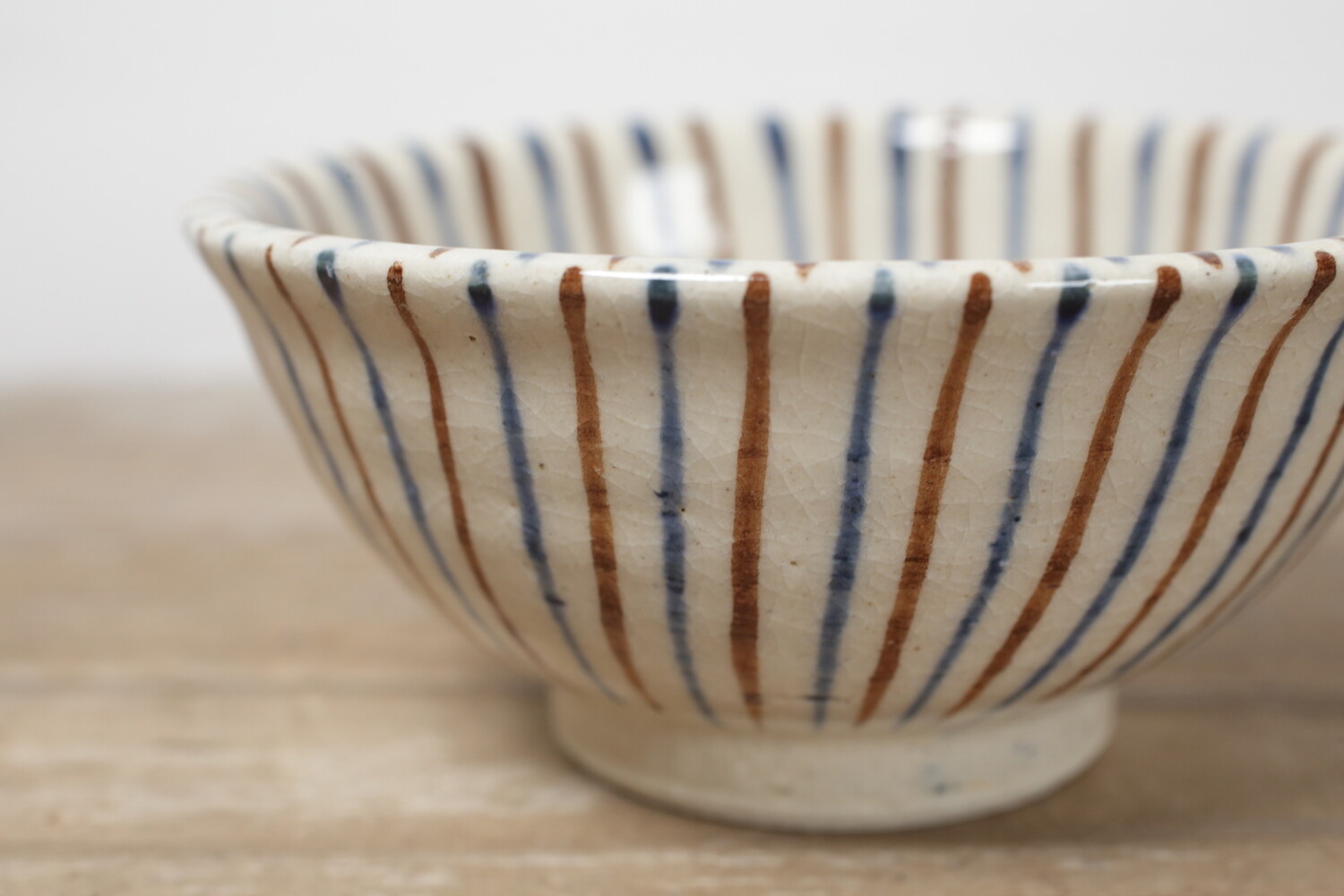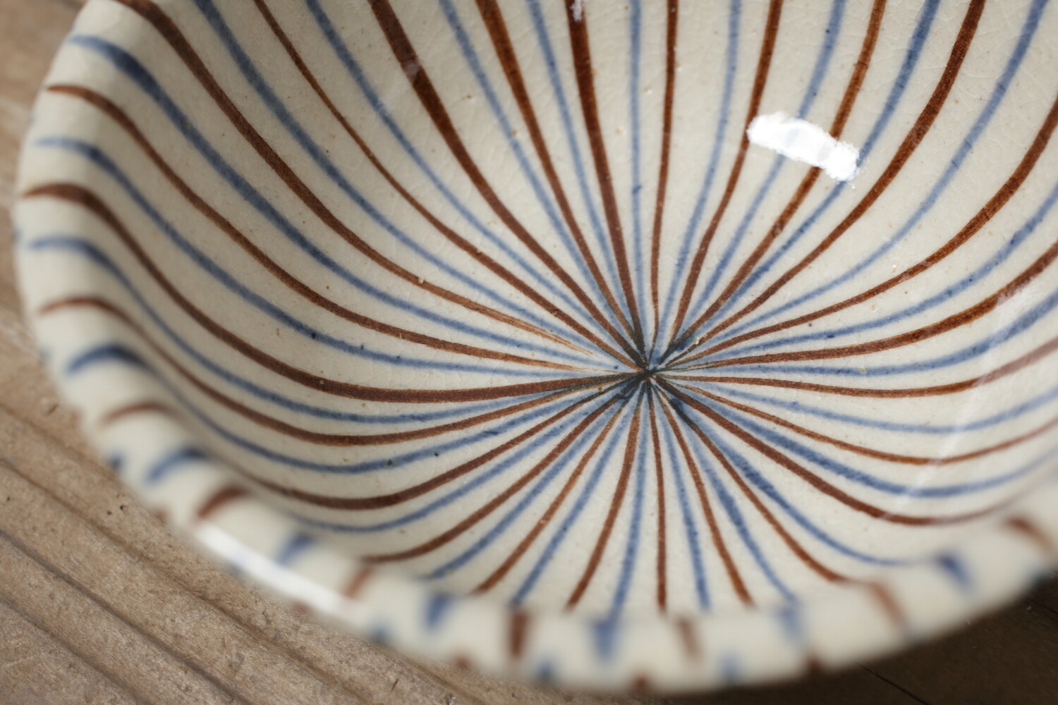 瀬戸の白い陶土に細くトクサが描かれた直径12cmほどの飯碗。店頭では中サイズとして捉えられ、男女問わずご購入される方が見受けられました。