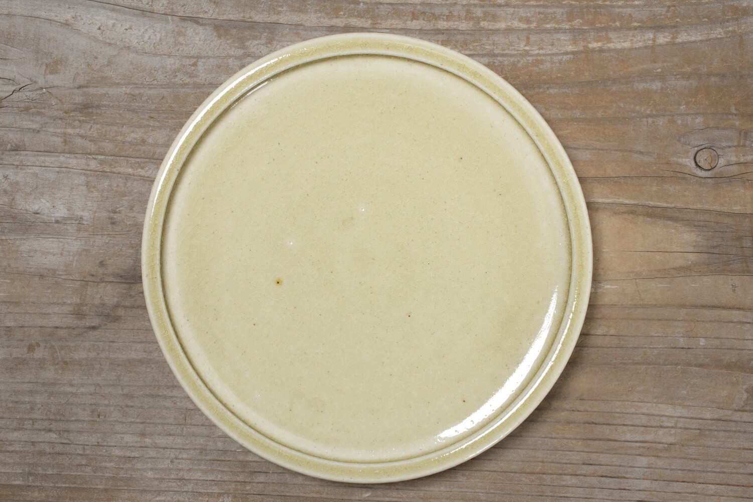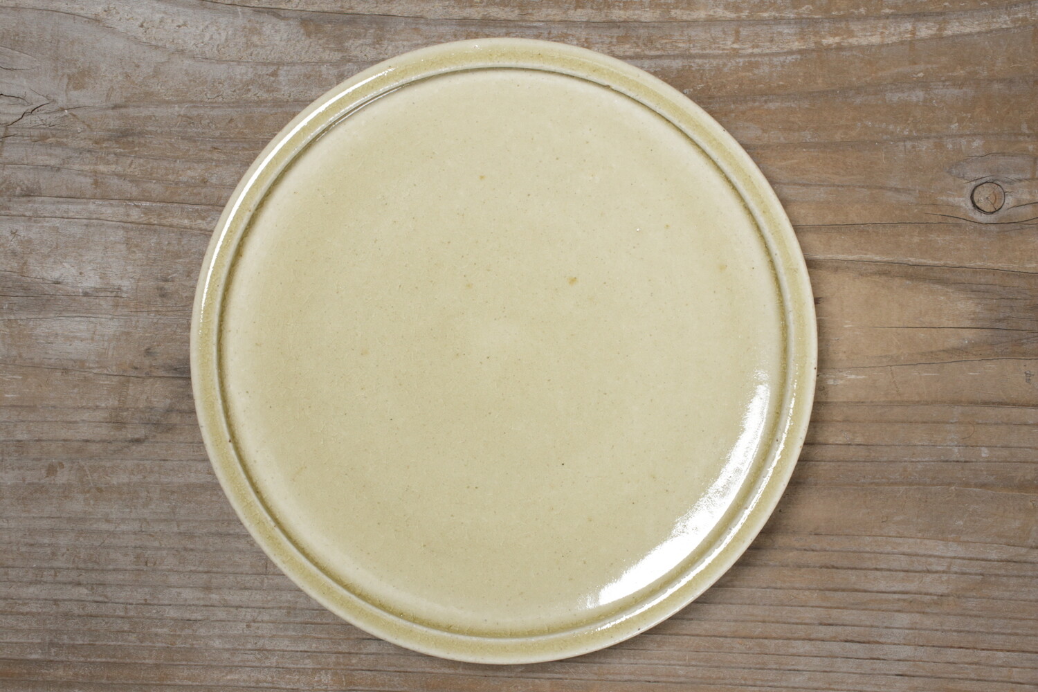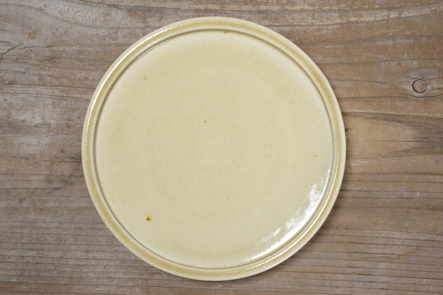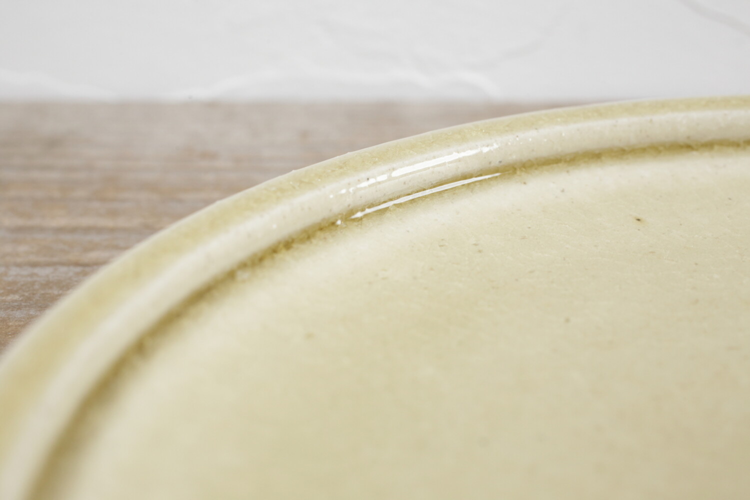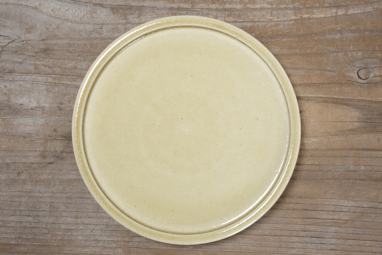古くから瀬戸に伝わる行灯皿(あんどんざら)。行灯に用いた油の受け皿として作られたのが始まりです。瀬戸本業窯の丁寧な手仕事と、美しくモダンでシンプルな黄瀬戸の佇まいが印象的です。お箸でもナイフとフォークでも頂きやすい平らな形は和食洋食問わずお使い頂けるので、魚料理もお肉料理にもお使い頂けます。食卓に登場する頻度が高くなるお皿です。サラダプレートとしてもいいですね。また、お皿を重ねた際に横から淵のみが見え、食器棚にすっきりとかつ美しく収納できます。