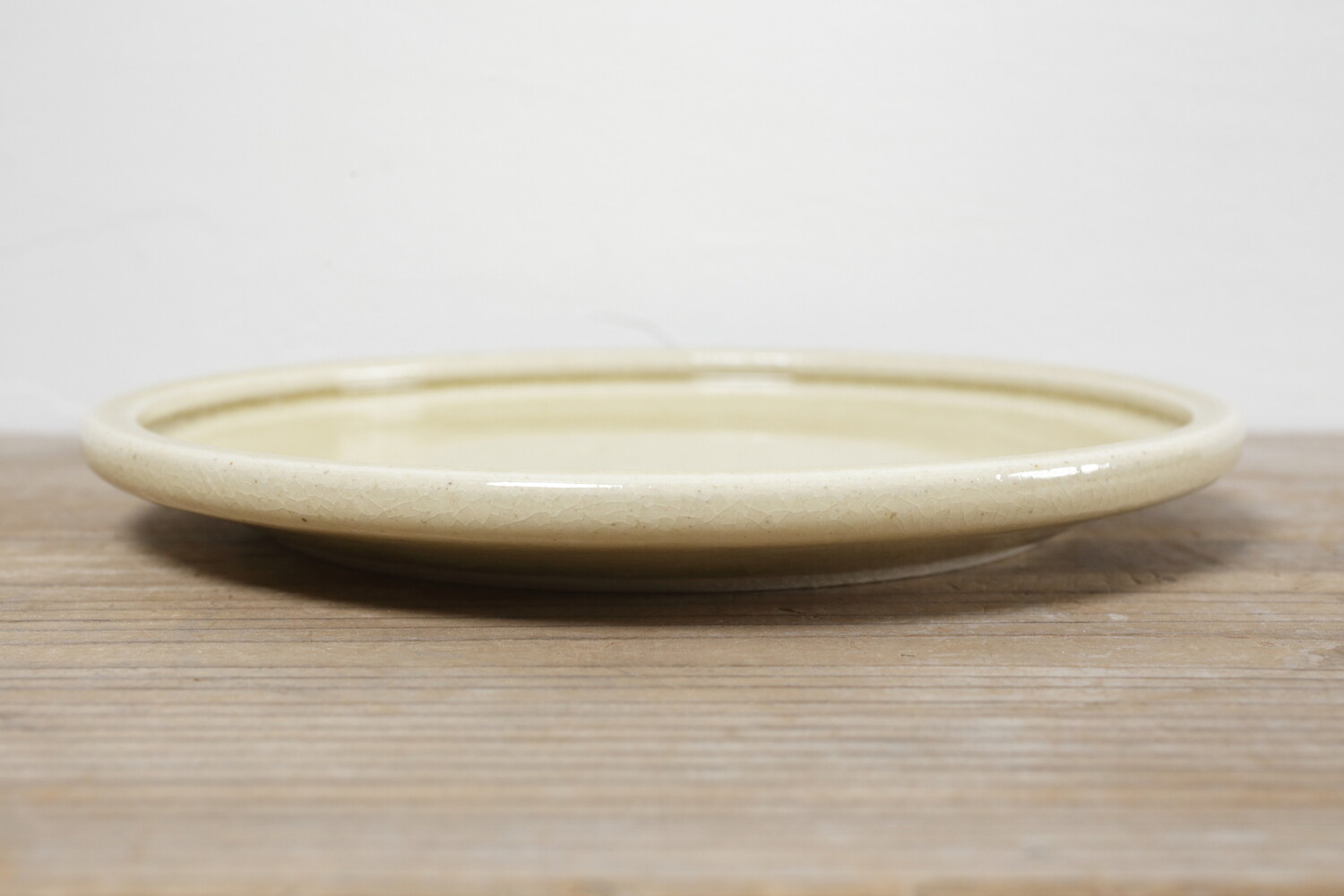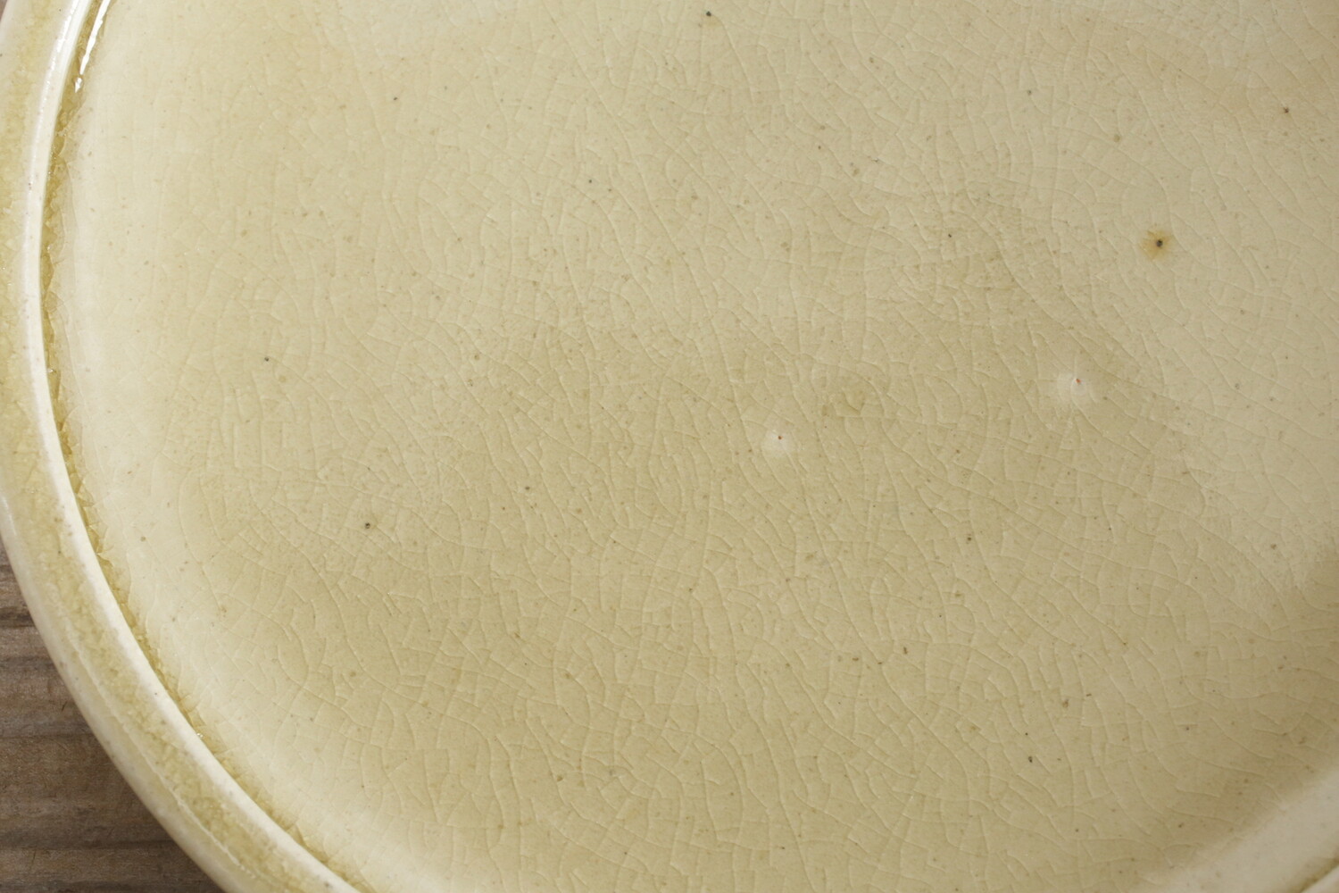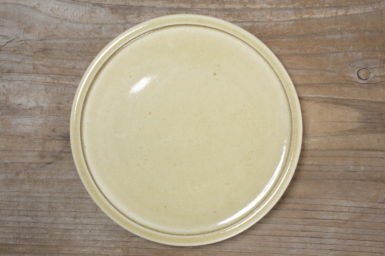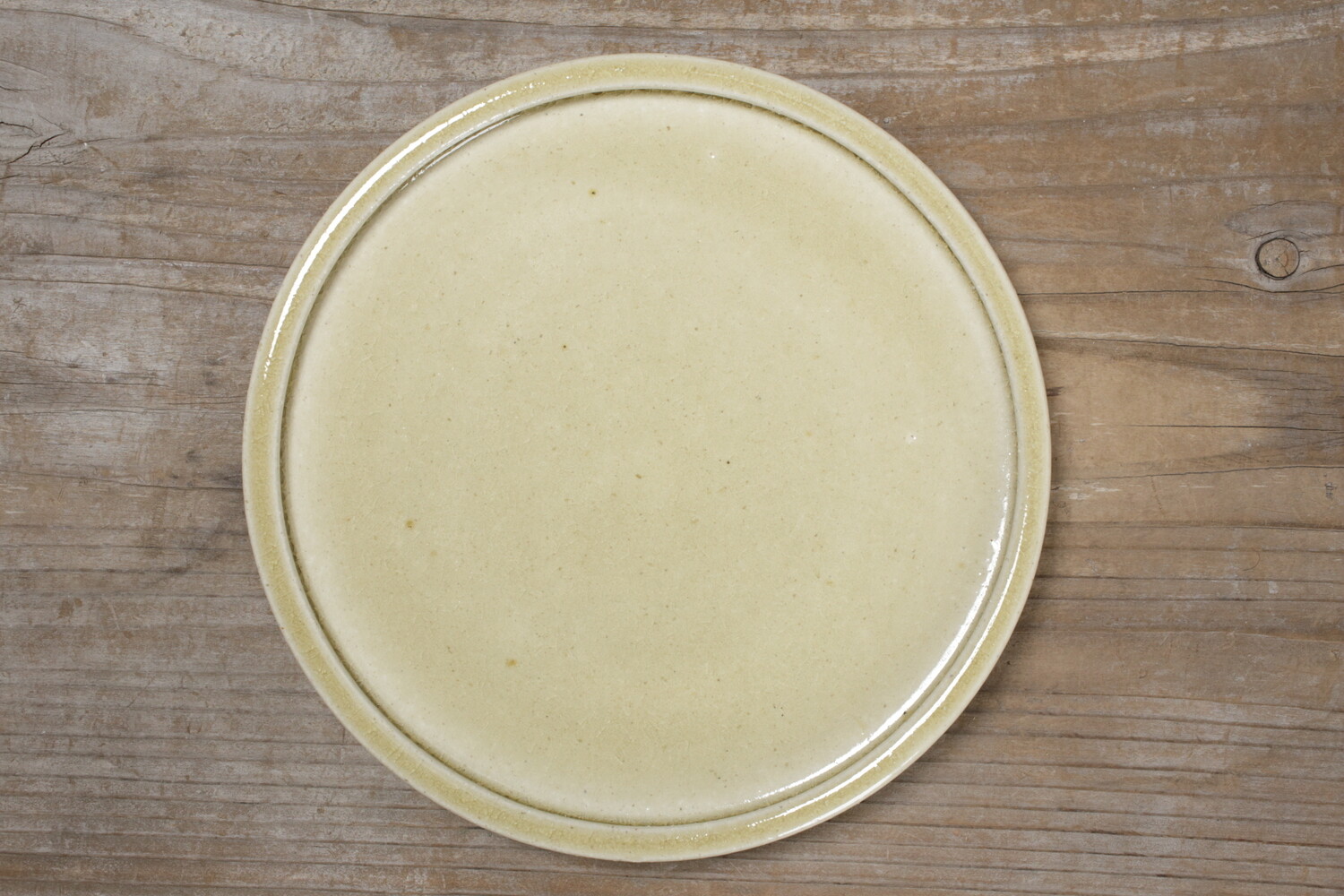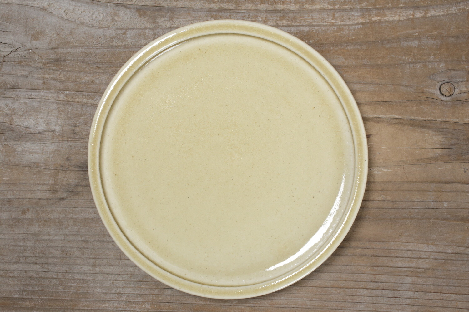 古くから瀬戸に伝わる行灯皿(あんどんざら)。行灯に用いた油の受け皿として作られたのが始まりです。瀬戸本業窯の丁寧な手仕事と、美しくモダンでシンプルな黄瀬戸の佇まいが印象的です。お箸でもナイフとフォークでも頂きやすい平らな形は和食洋食問わずお使い頂けるので、魚料理もお肉料理にもお使い頂けます。食卓に登場する頻度が高くなるお皿です。サラダプレートとしてもいいですね。また、お皿を重ねた際に横から淵のみが見え、食器棚にすっきりとかつ美しく収納できます。