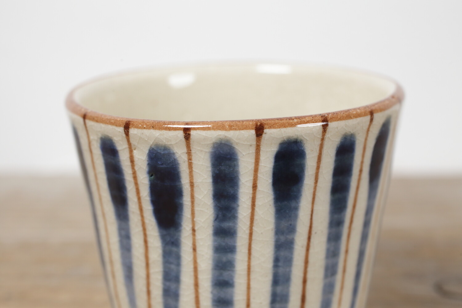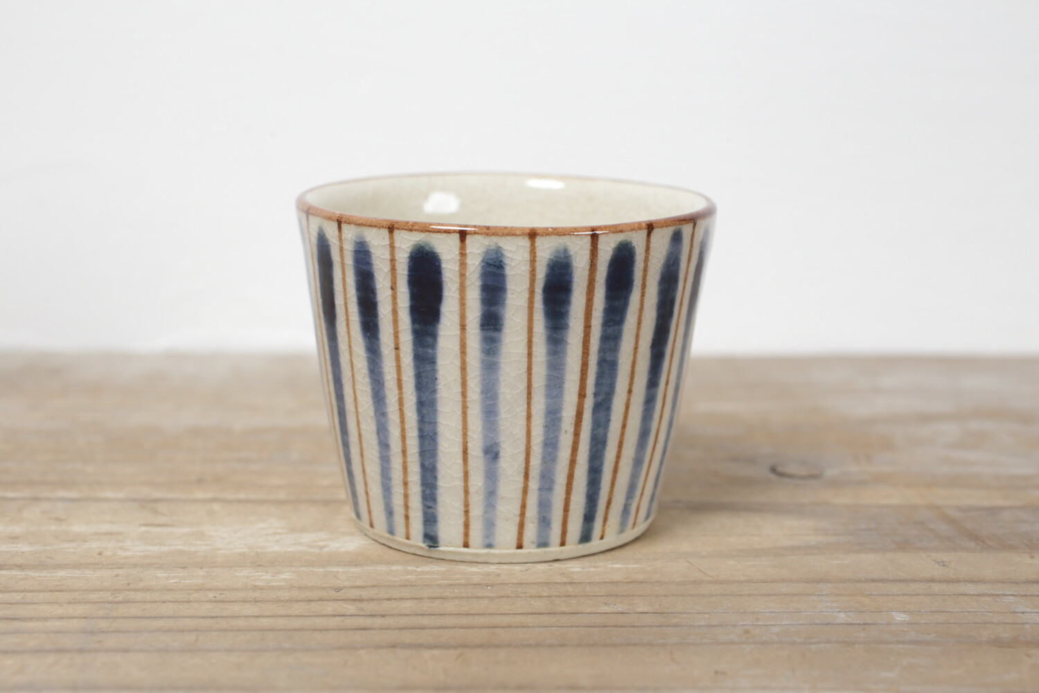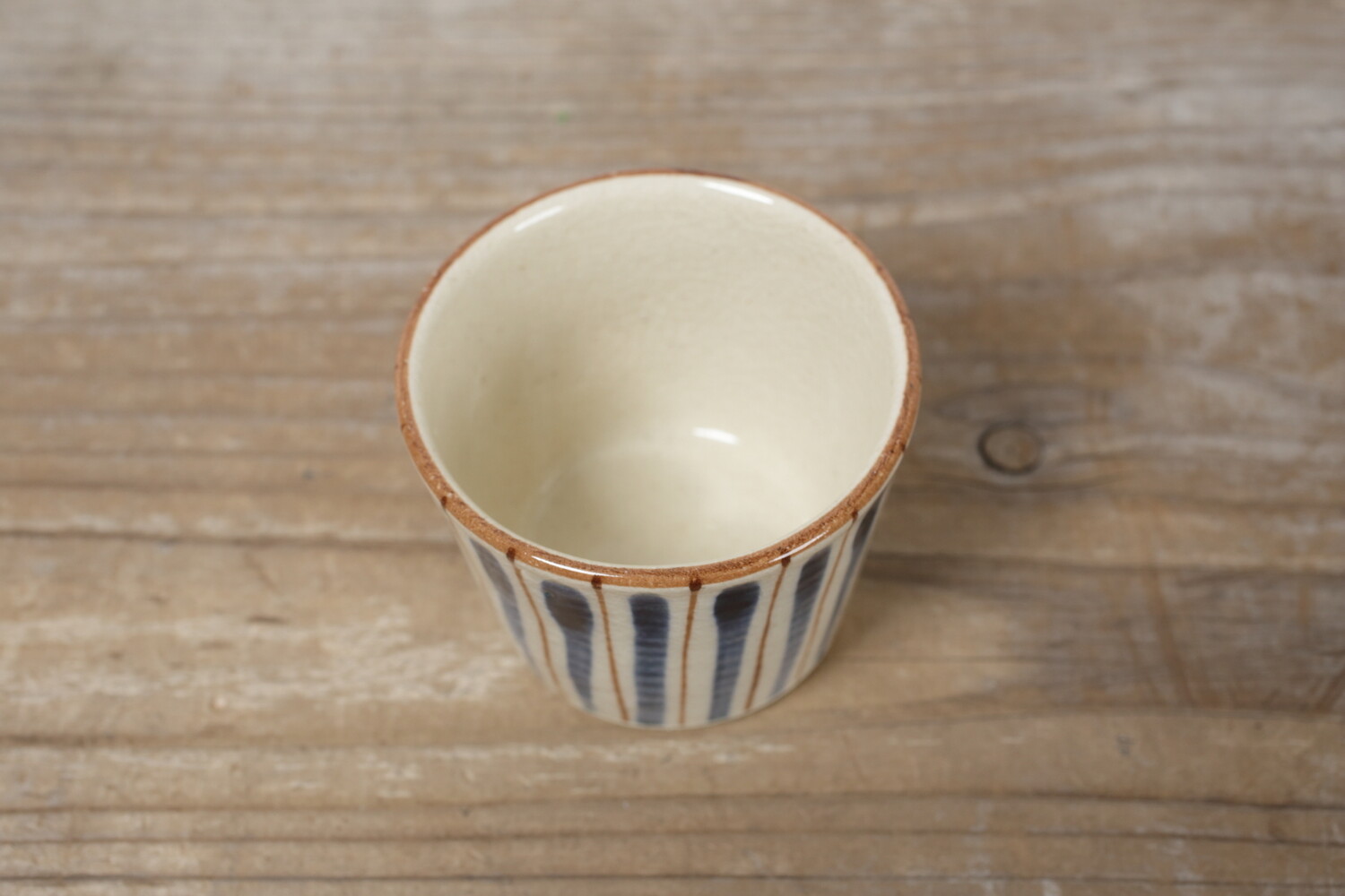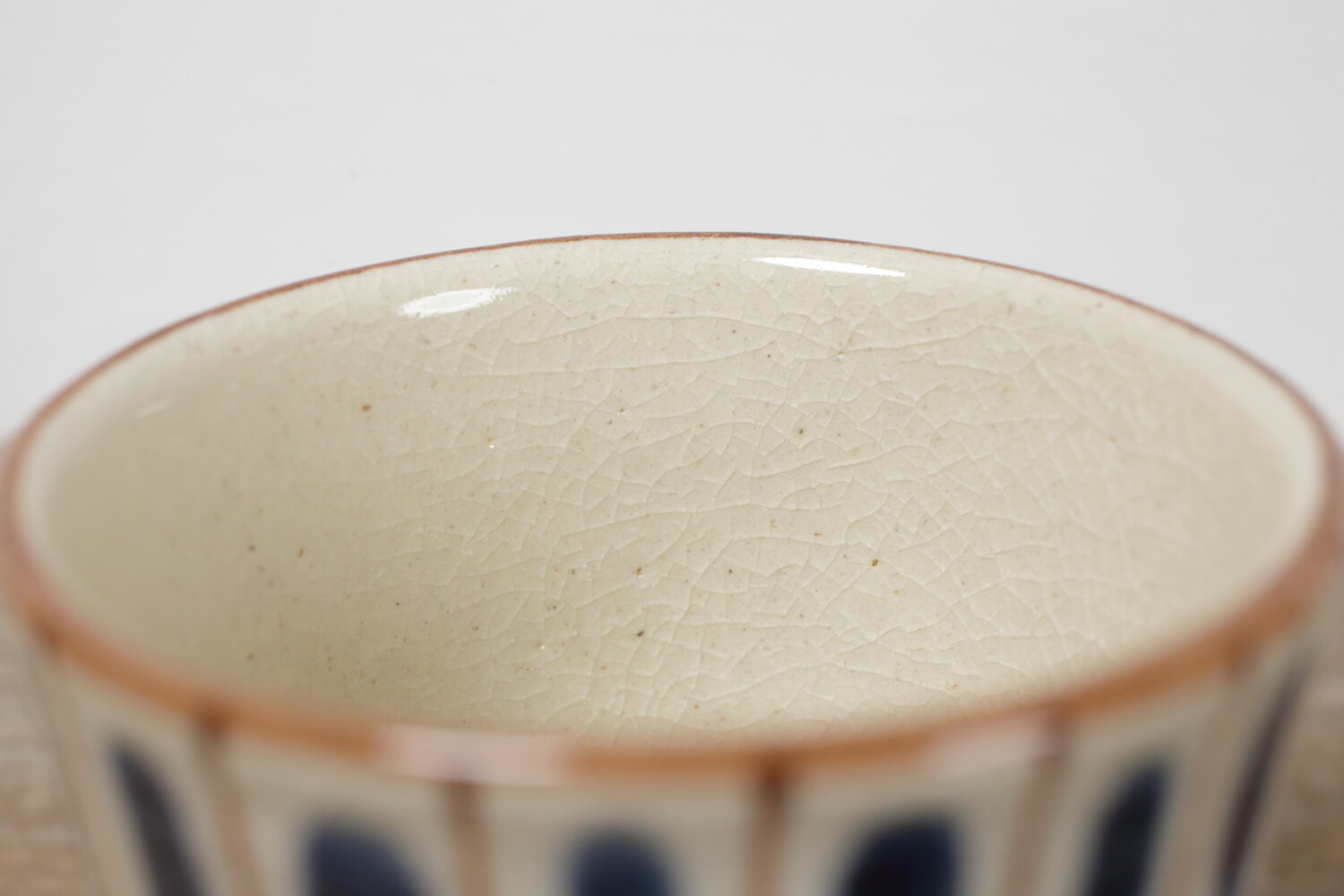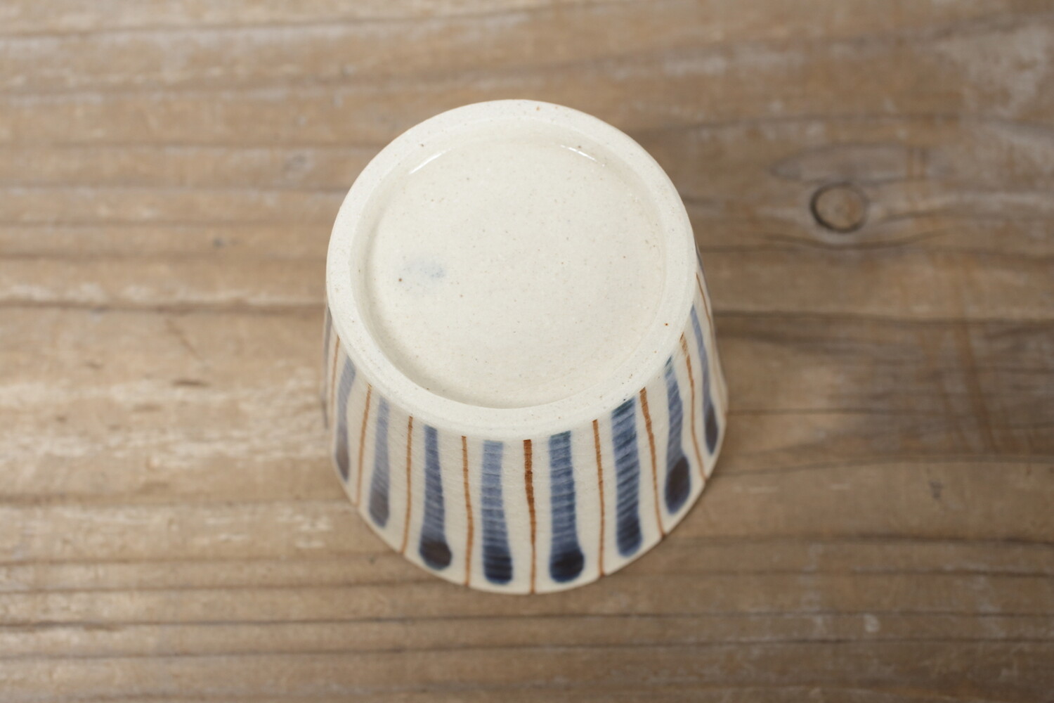 トクサの染付が描かれた蕎麦猪口。内側を見ても瀬戸の白い陶土が際立ちます。茶碗蒸しなどにもいいでしょう。