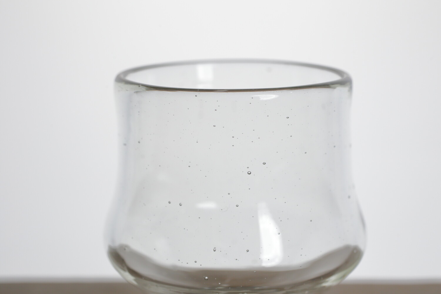 手吹きガラスならではの気泡の入りや形成の際に生じるガラスの筋や引っ掻き傷、左右非対称の形、底のガラス切断面、炭などの混入物は手吹きガラス、ハンドメイドの特徴としてご理解下さい。これらの理由での返品はお受けいたしかねます。 - 耐熱ガラスではありません。熱いものを注ぐと破損しますので御注意下さい。