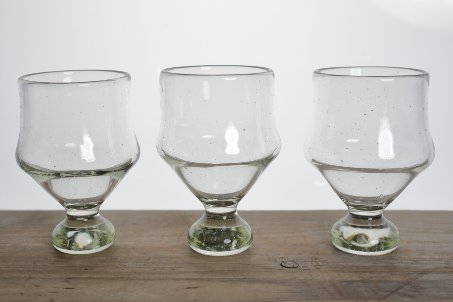 ガラスの丸い塊がコップについたような健康的な印象のゴブレット。季節の果物のジュースやスムージー、冷茶やビールなどお好きな飲み物でお楽しみ下さい。