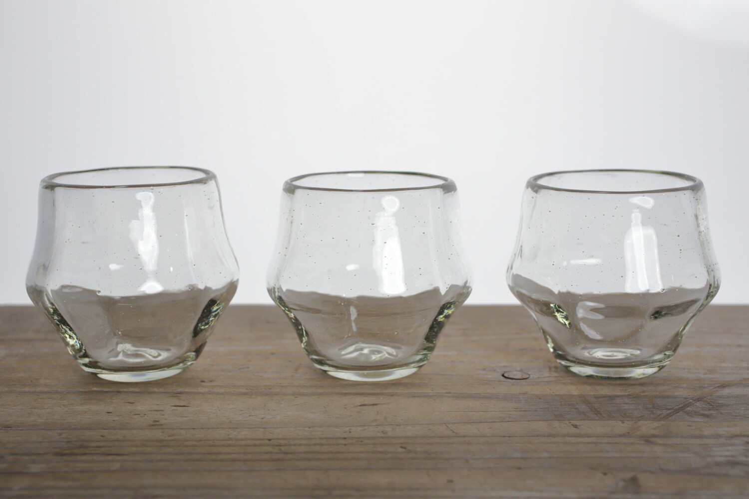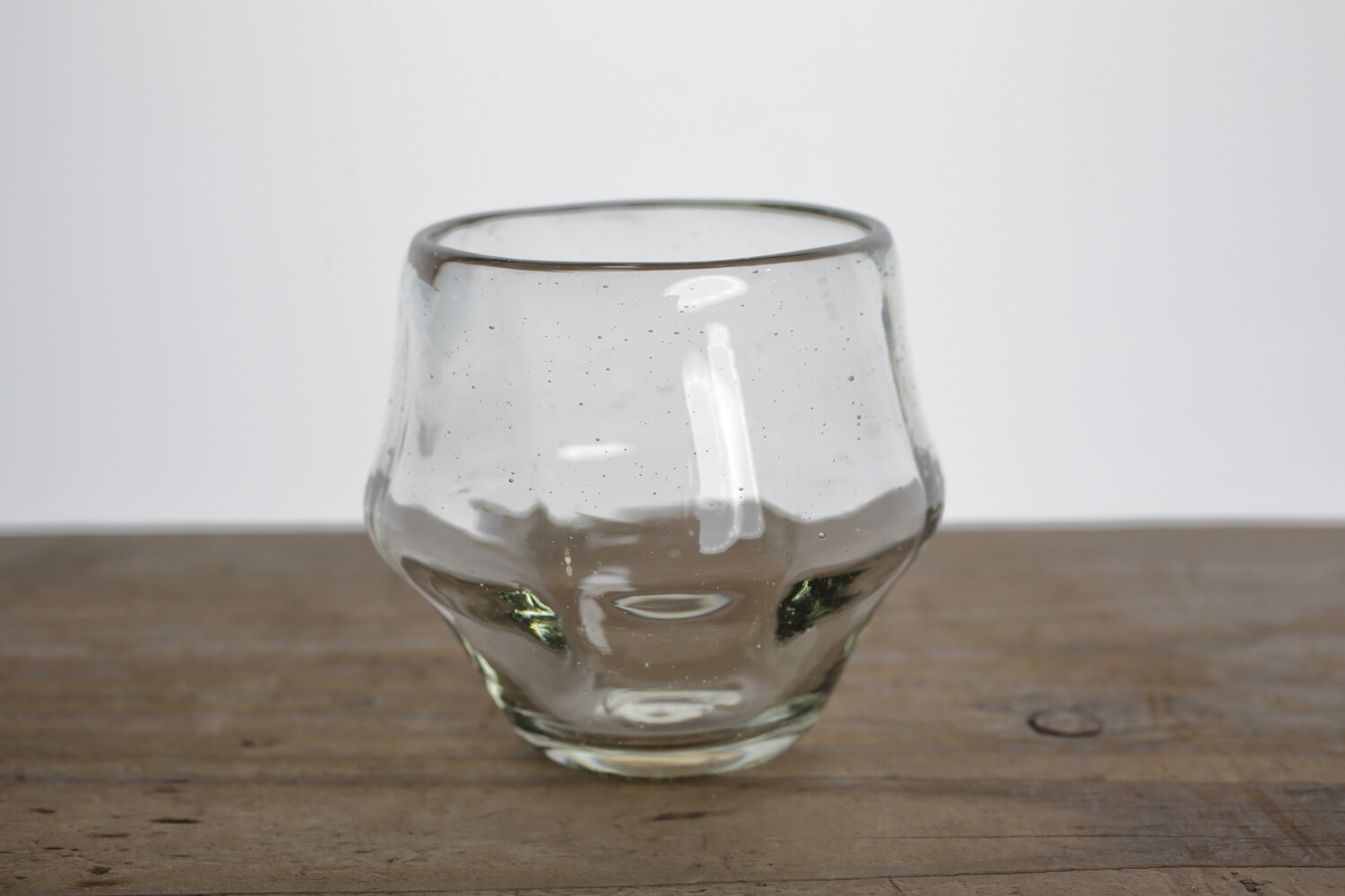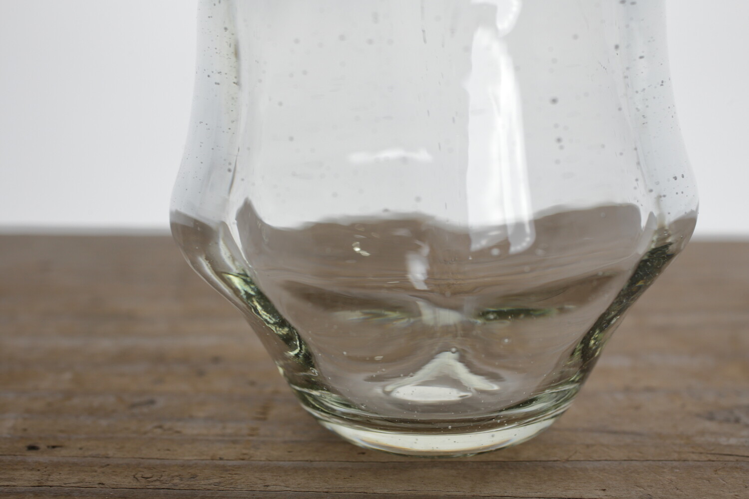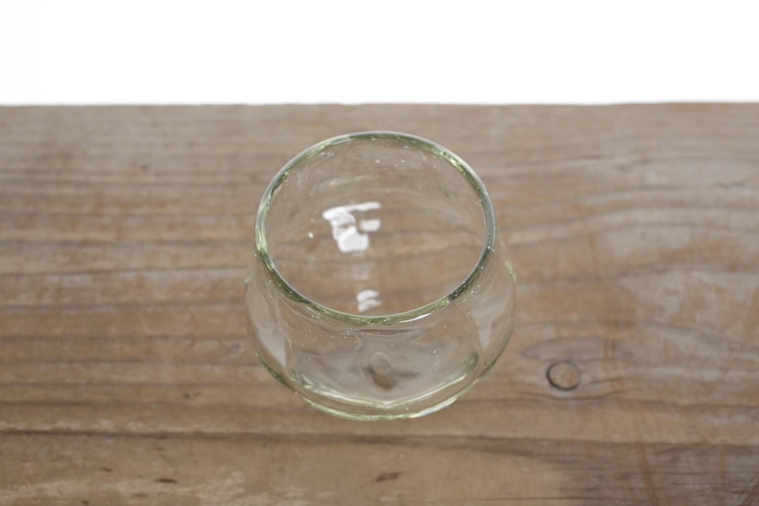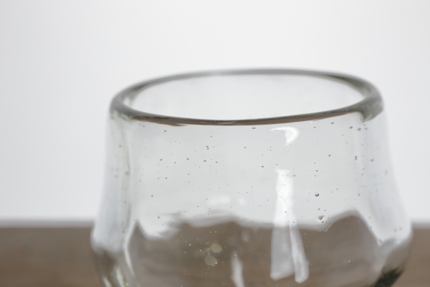 手吹きガラスならではの気泡の入りや形成の際に生じるガラスの筋や引っ掻き傷、左右非対称の形、底のガラス切断面、炭などの混入物は手吹きガラス、ハンドメイドの特徴としてご理解下さい。これらの理由での返品はお受けいたしかねます。 - 耐熱ガラスではありません。熱いものを注ぐと破損しますので御注意下さい。