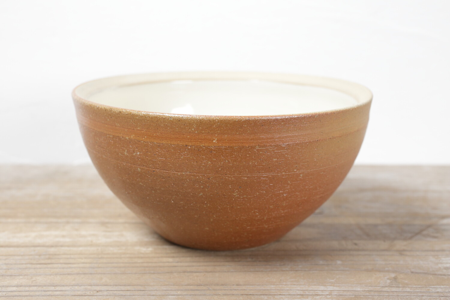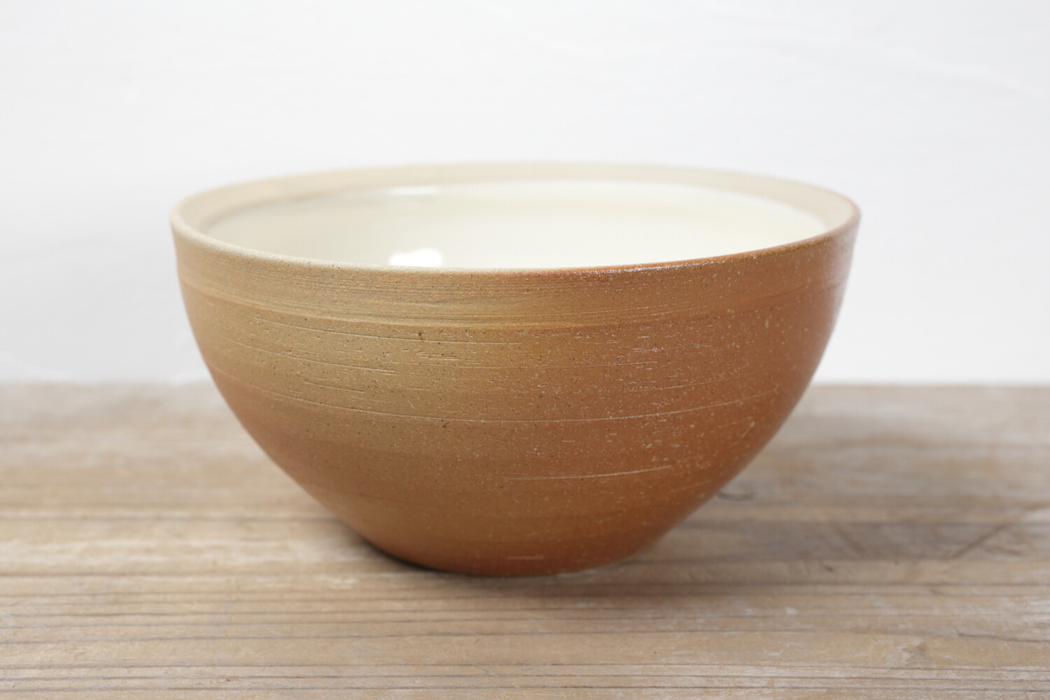 出西窯の長く続く定番の焼き〆鉢。欧米の器に通ずるモダンさがあり、工業デザインとぬくもりのあるクラフト感のバランスがとても現代的な深鉢です。登り窯による焼成のため、炎と燃えた薪の灰が当たることで出る緋色(ひいろ)と呼ばれる焼き色のような色合いが、いい心地よさを生み出しています。直径18.5cmの六寸サイズは、おかずやサラダの盛り鉢としていい大きさです。盛り付けるお料理もインテリアも和洋問わず組み合わせができるのがいいですね。