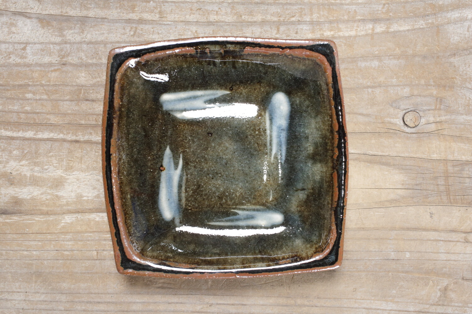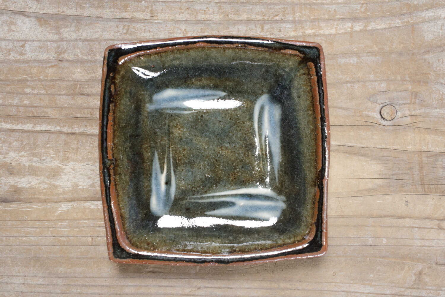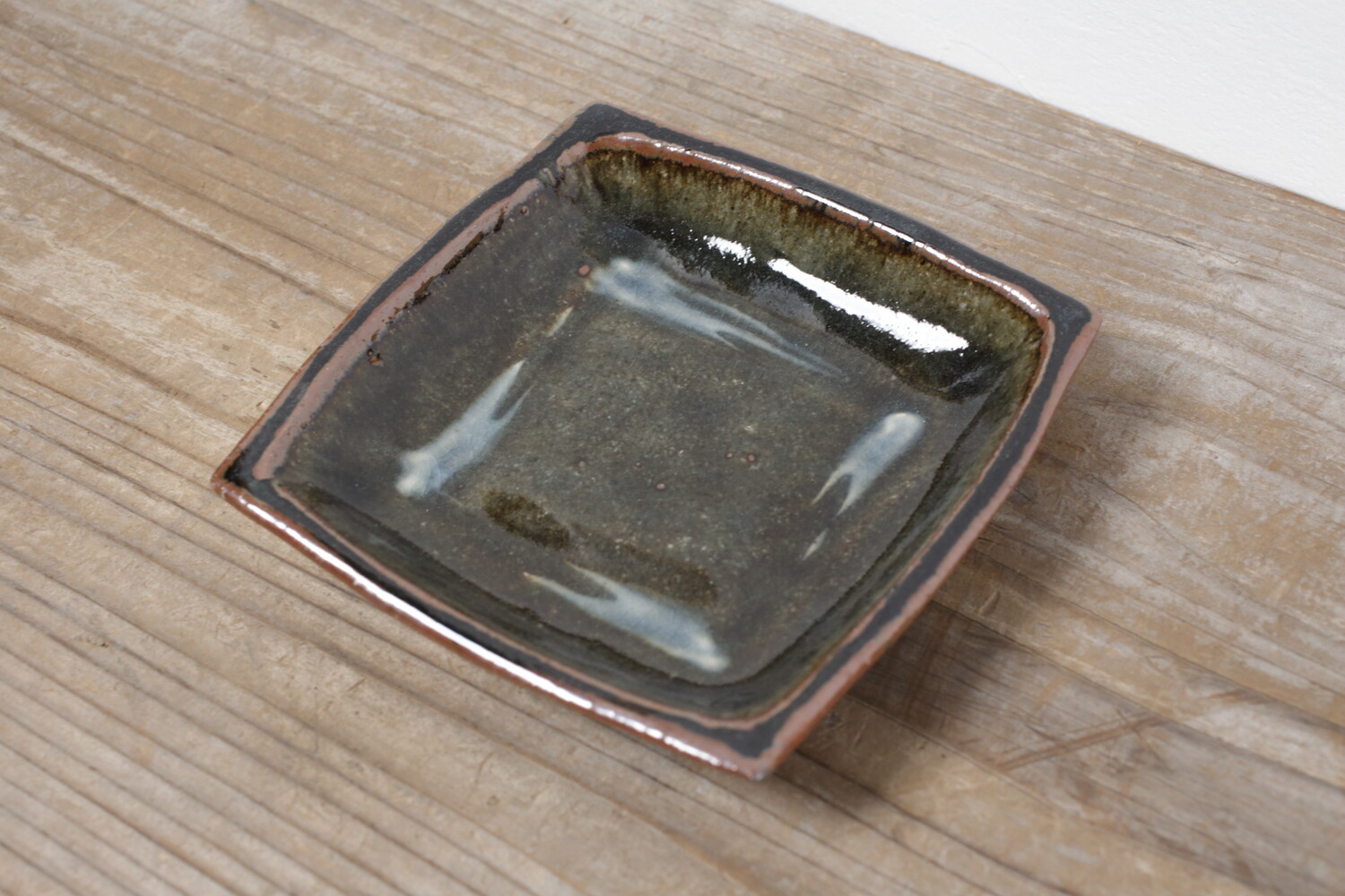 普段使いの取り鉢として重宝する15cmほどの正方形型の呉須釉角鉢。深過ぎないので、お一人分のお刺身やおかずの取り分け皿にもいいでしょう。