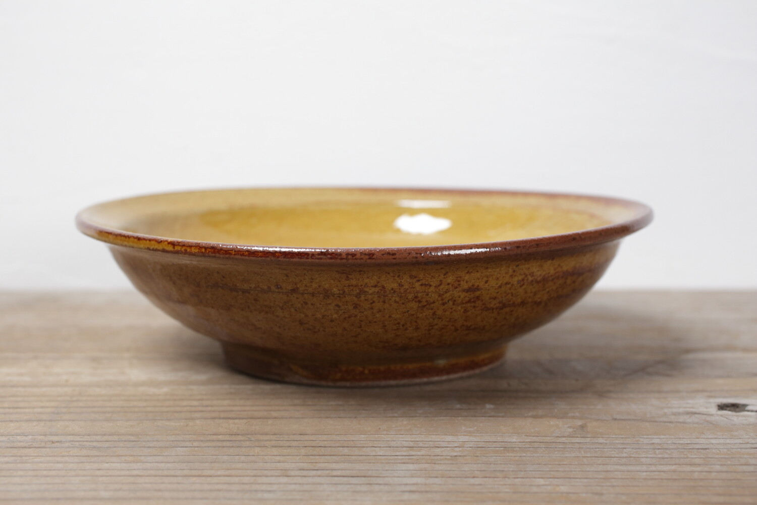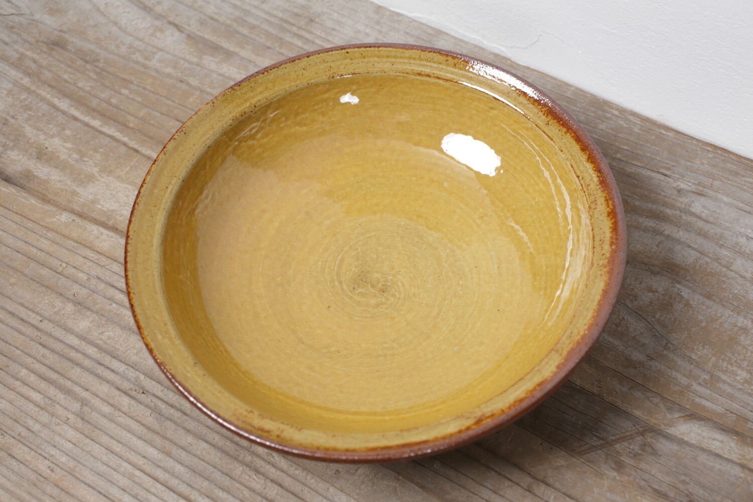 明るく楽しげな黄釉のリム付き七寸鉢。お一人分のカレーやシチューに、またご家族のおかずにもいいでしょう。