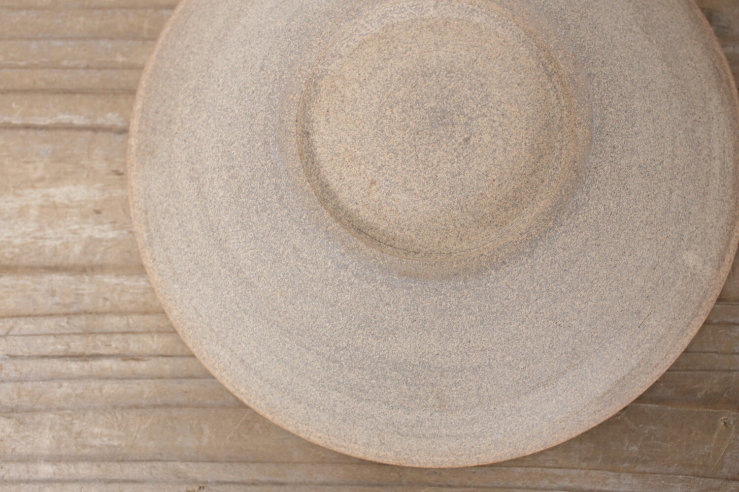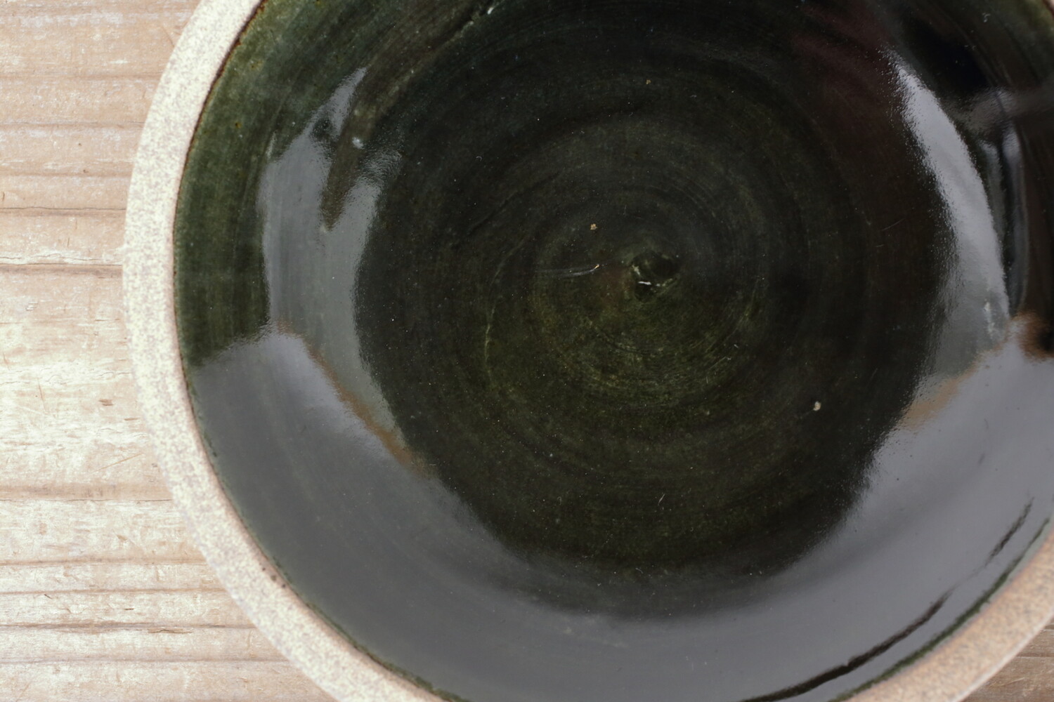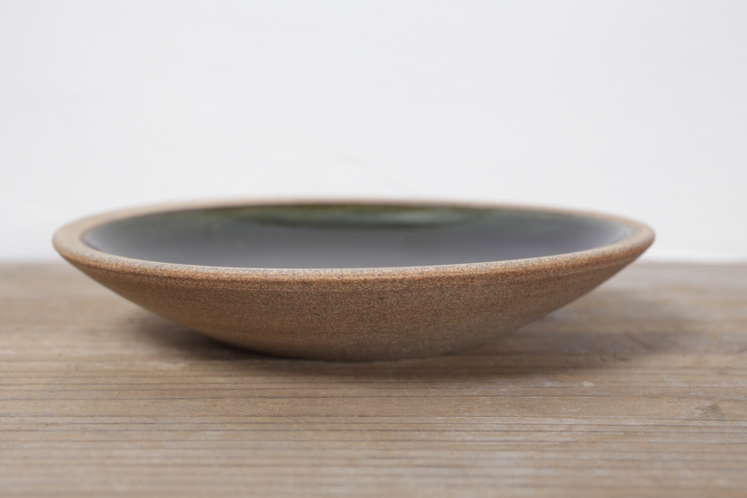 藍色と深緑を混ぜたような奥行きのある色合いが印象的な呉須釉のふち無し六寸皿。少し大きめの取り分け皿として複数のおかずに、またサラダやパン皿、果物やお漬物などにもいいでしょう。