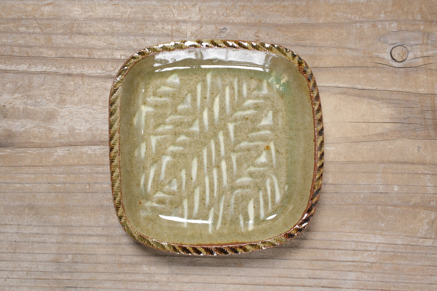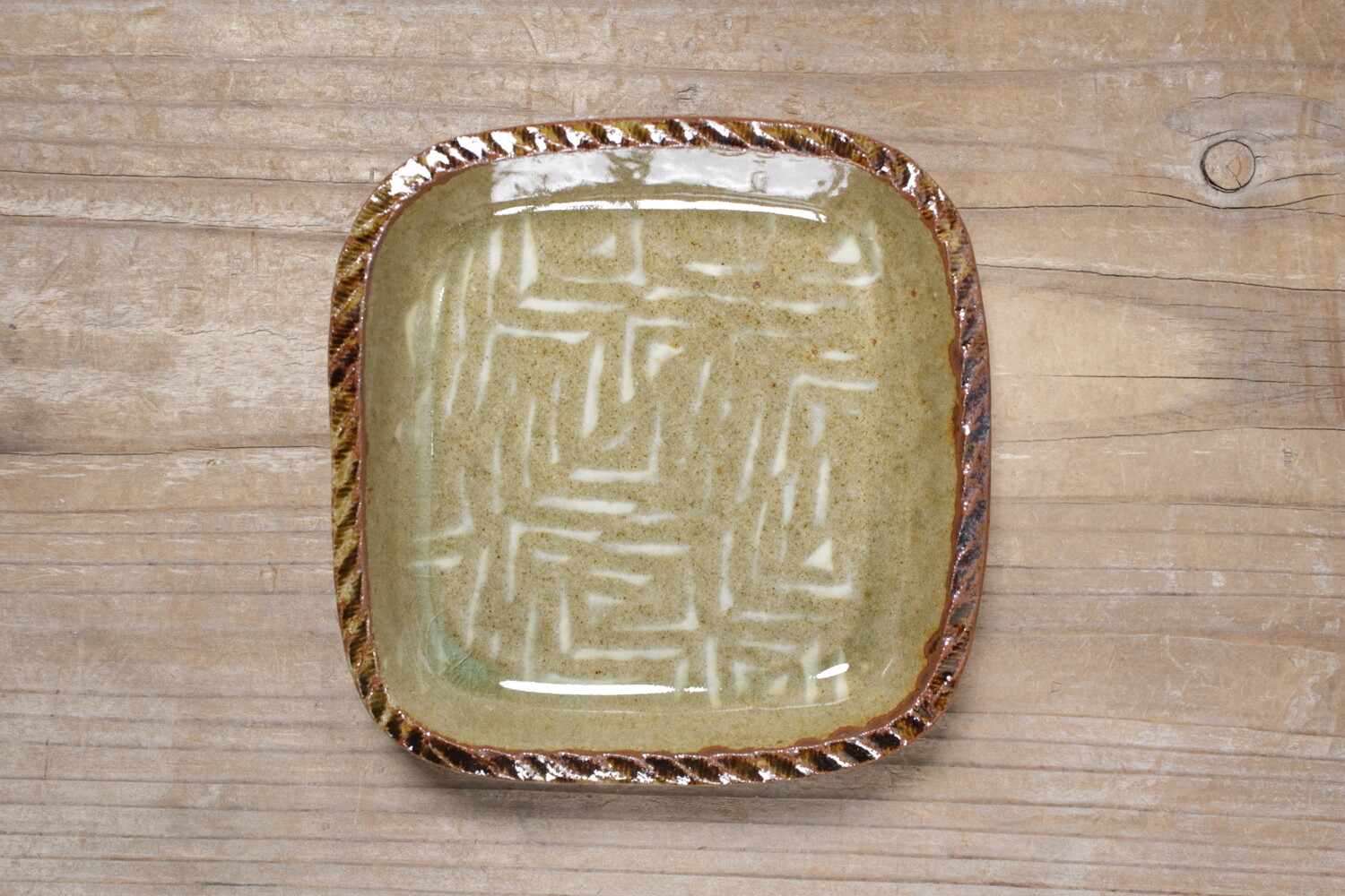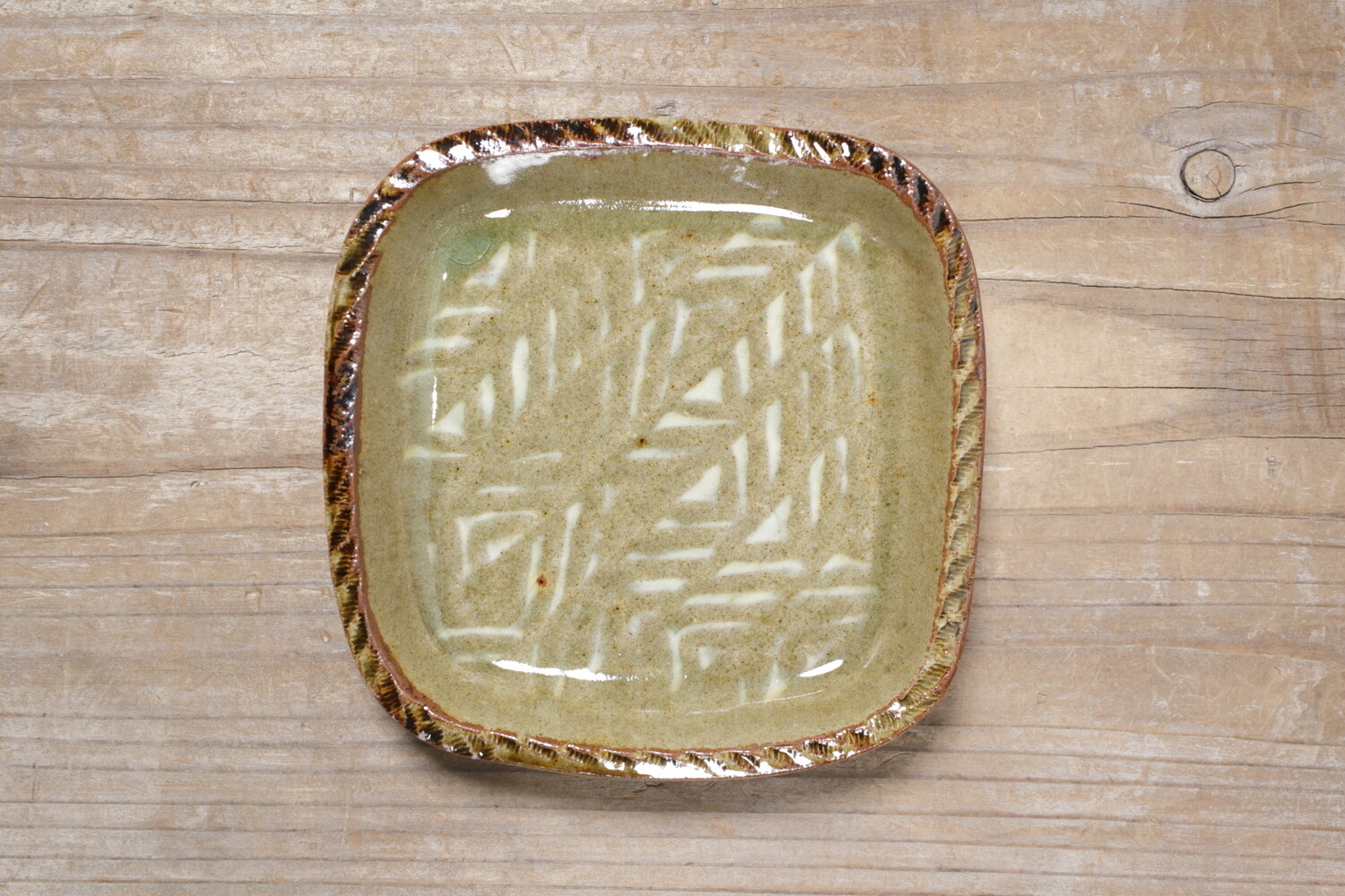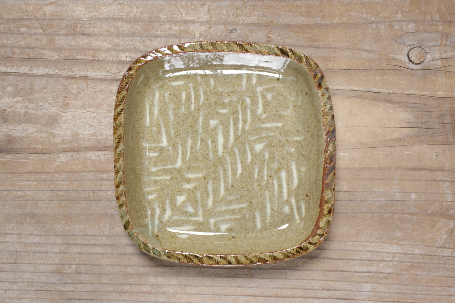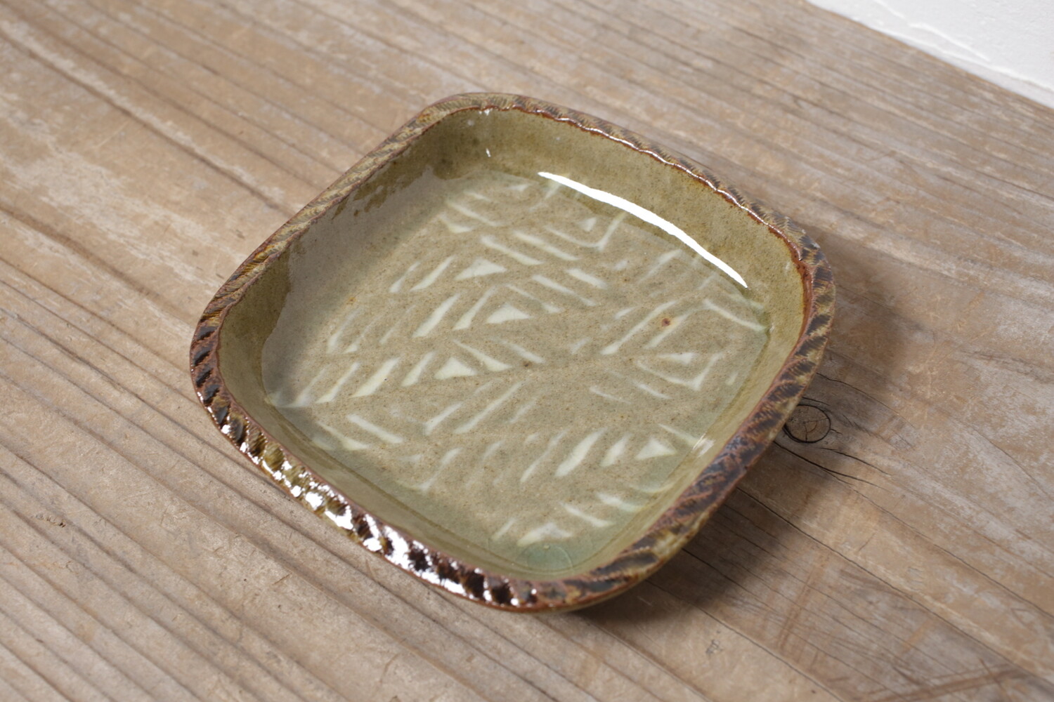 取り分け皿として、また和菓子皿としてもいい四角小鉢。小鉢と言うより少し深さをつけた平皿と言った方がいいかもしれません。