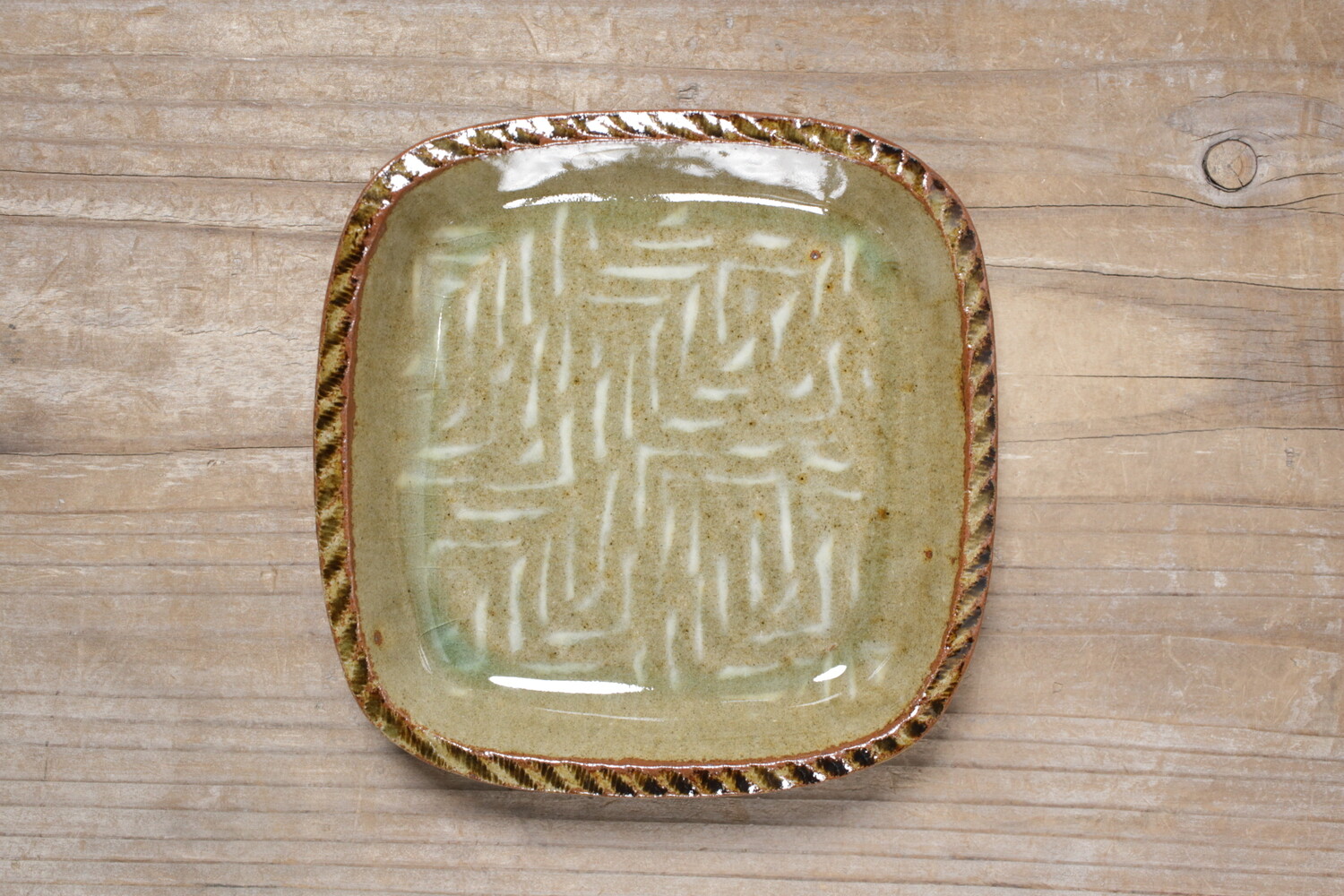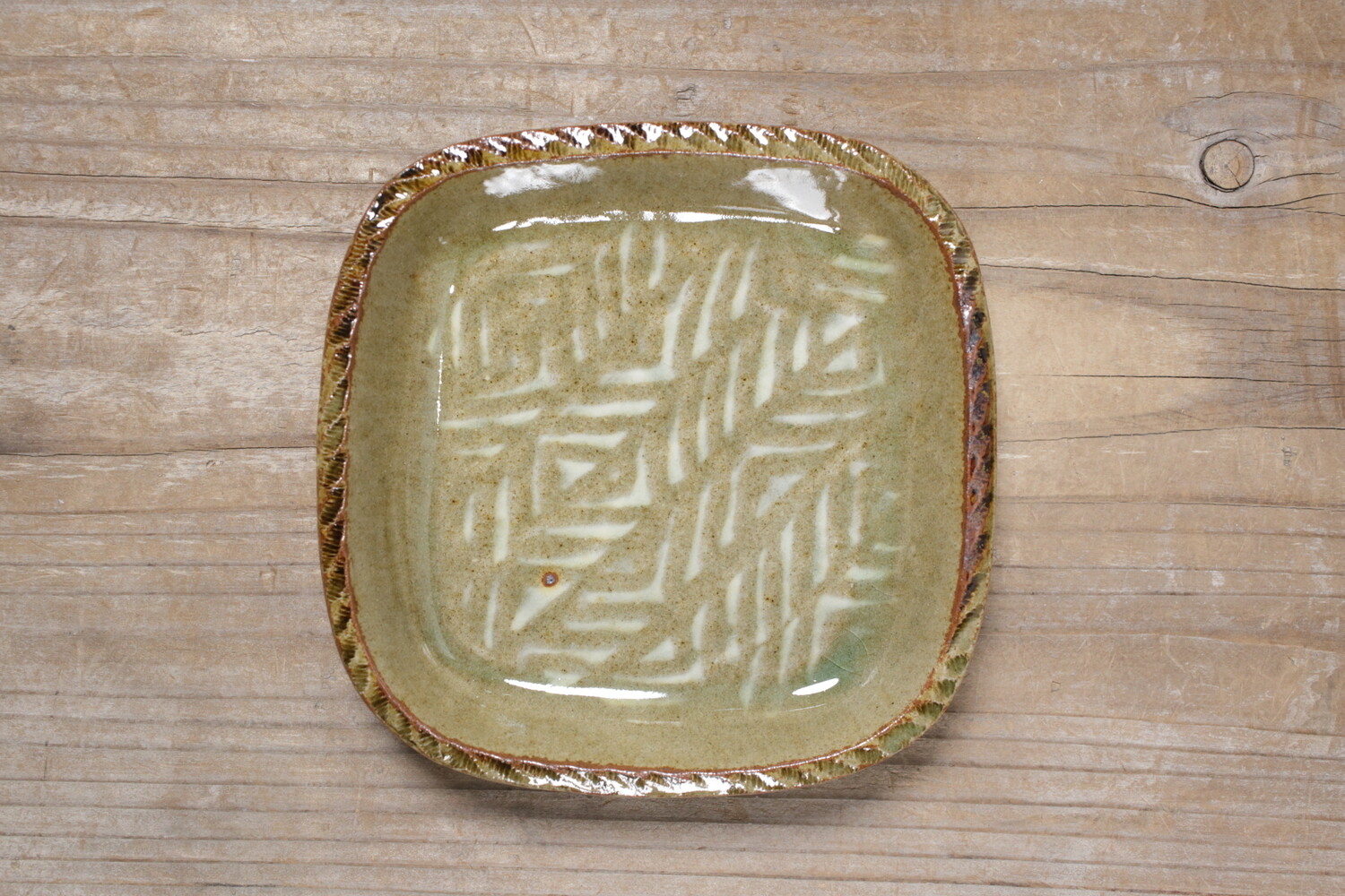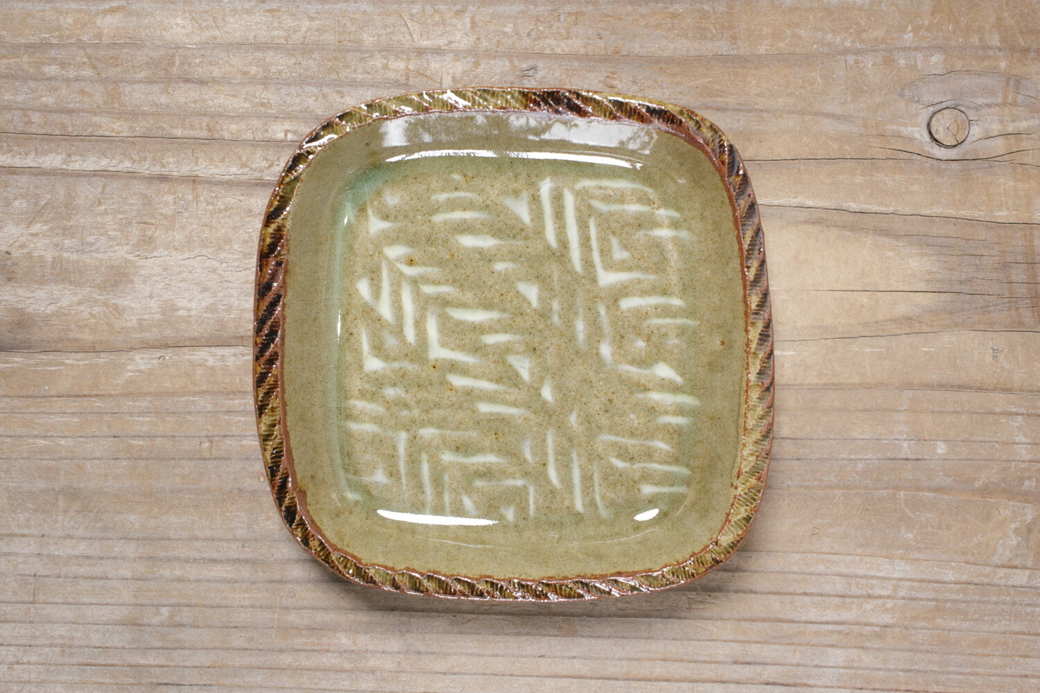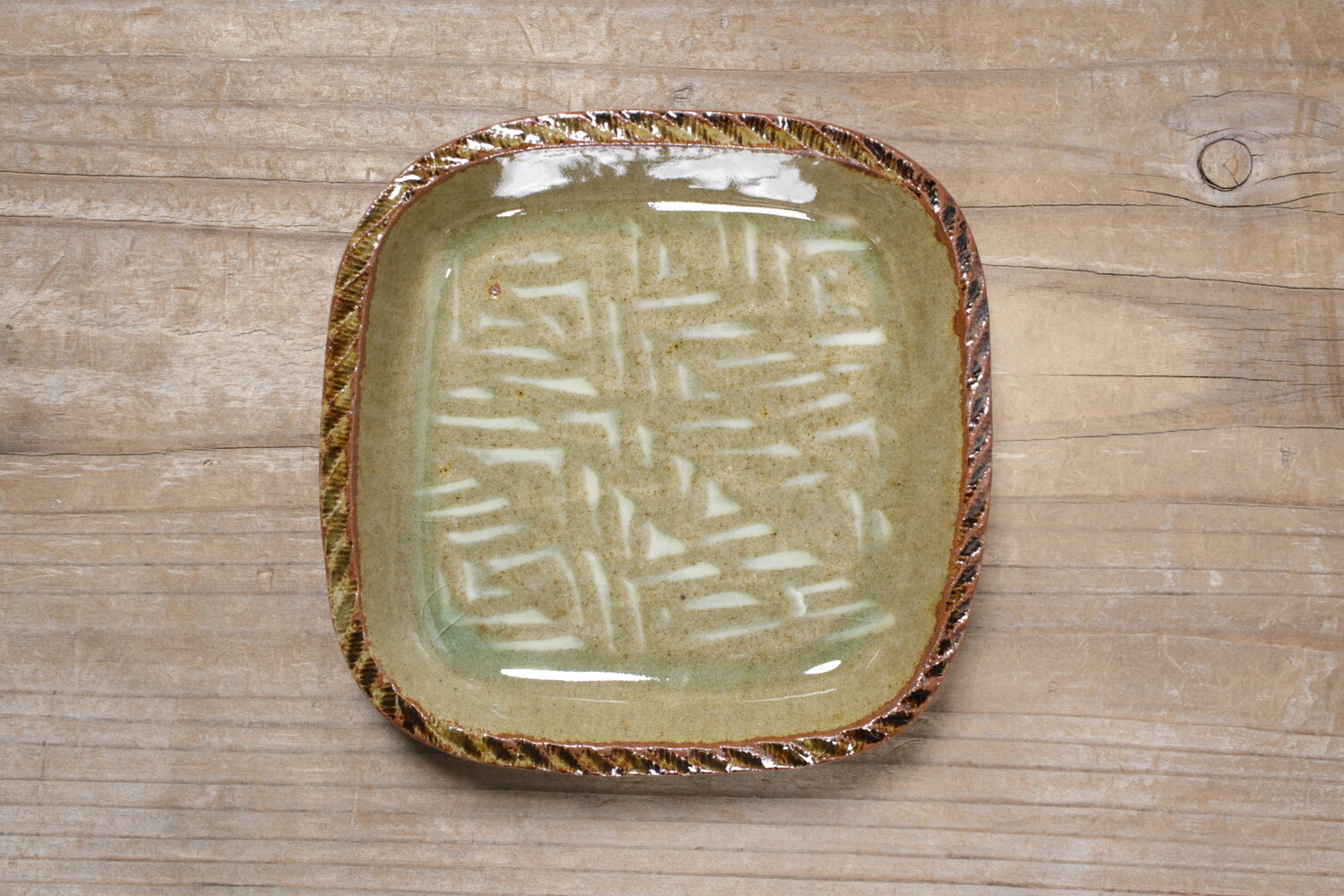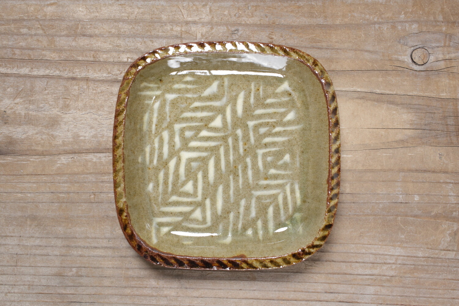 取り分け皿として、また和菓子皿としてもいい四角小鉢。小鉢と言うより少し深さをつけた平皿と言った方がいいかもしれません。