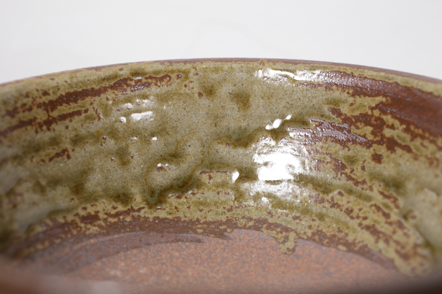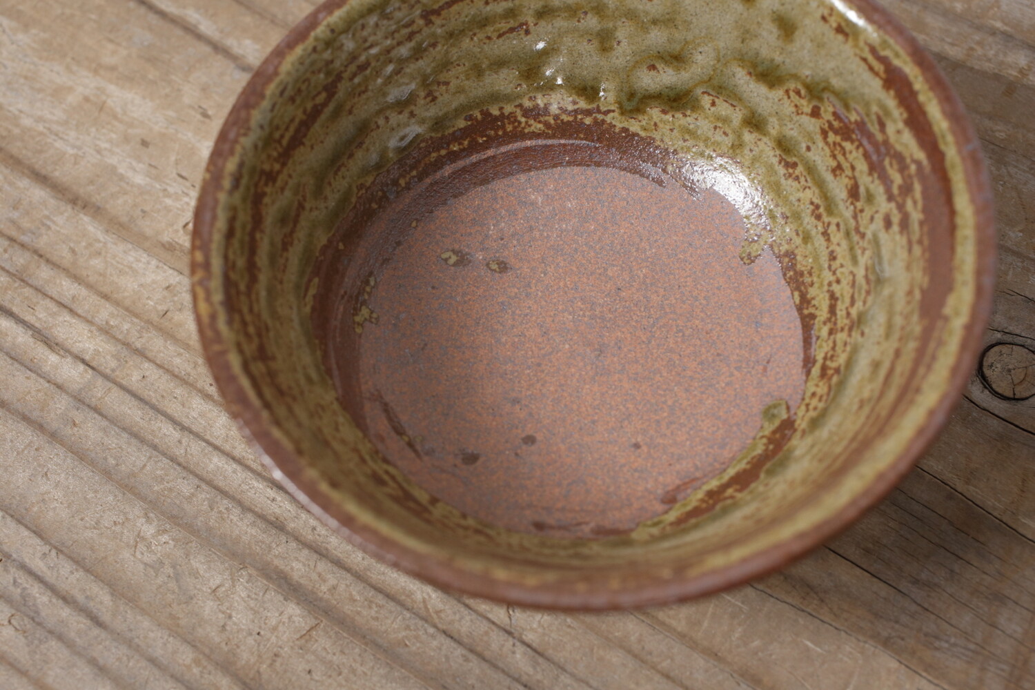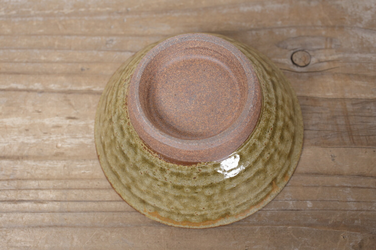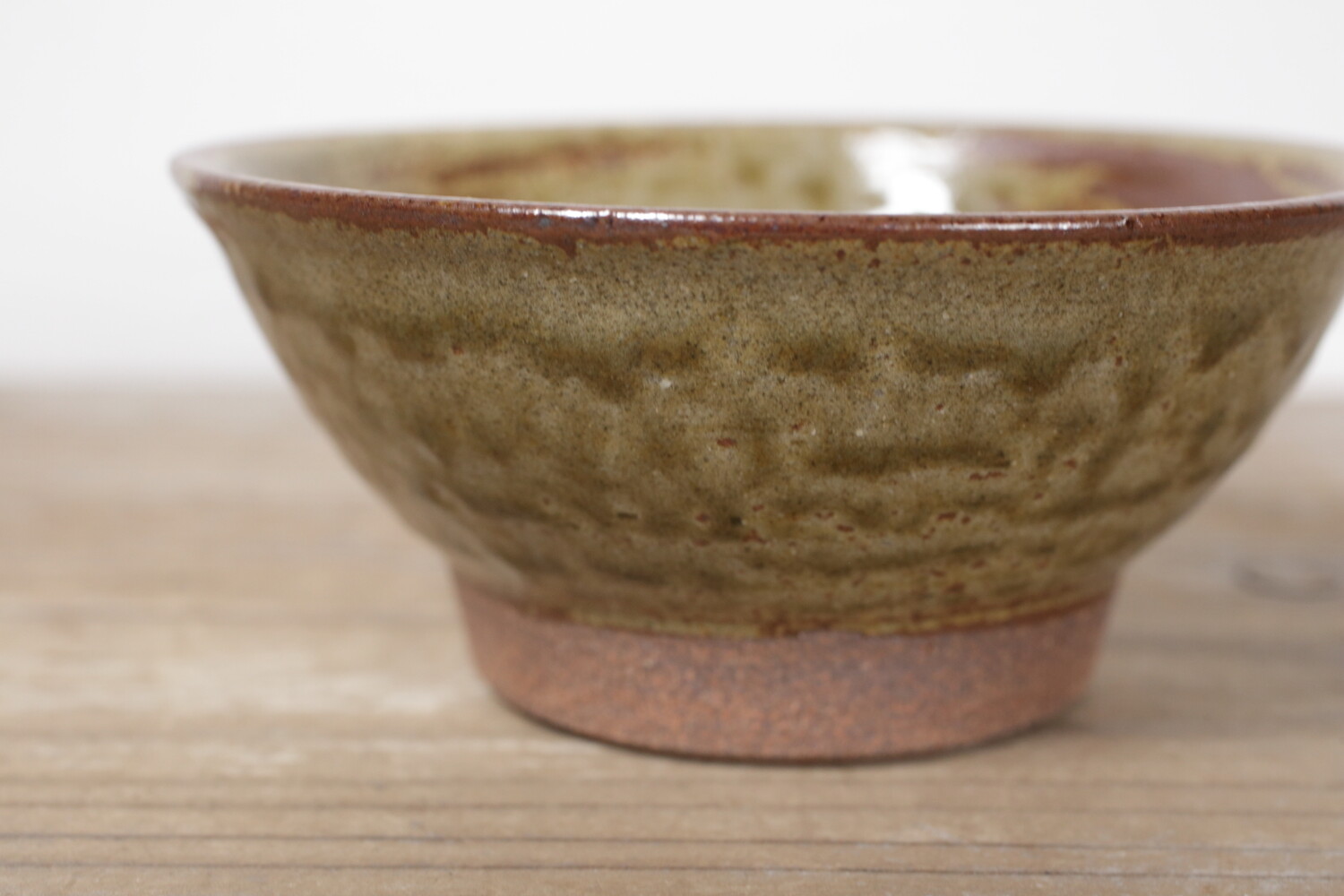 涌田型(わくた)と呼ばれ高台が広く口元に向かって直線的に広がる沖縄の伝統的な形のお碗です。また16世紀から17世紀に作られていた朝鮮由来の伊羅保茶碗(抹茶碗)などお茶の道具に用いられていた、表面がざらっと粗い「伊羅保(いらぼ)釉」が用いられているため、どこかお茶の世界観も感じます。お茶碗としては中サイズのサイズ感です。