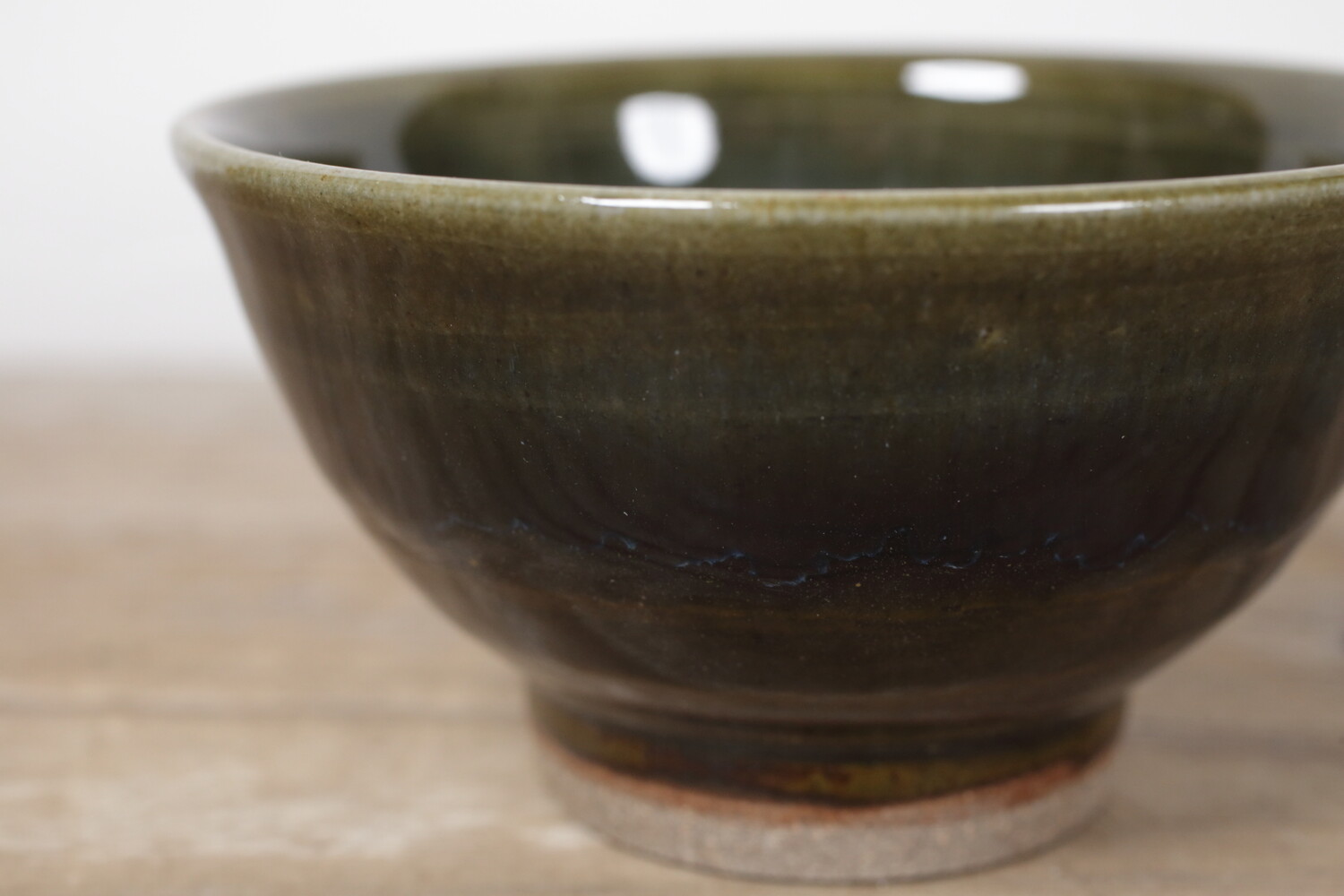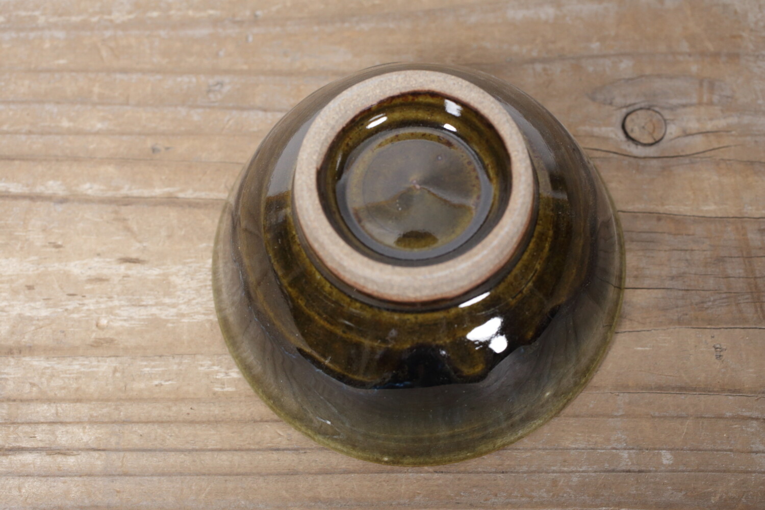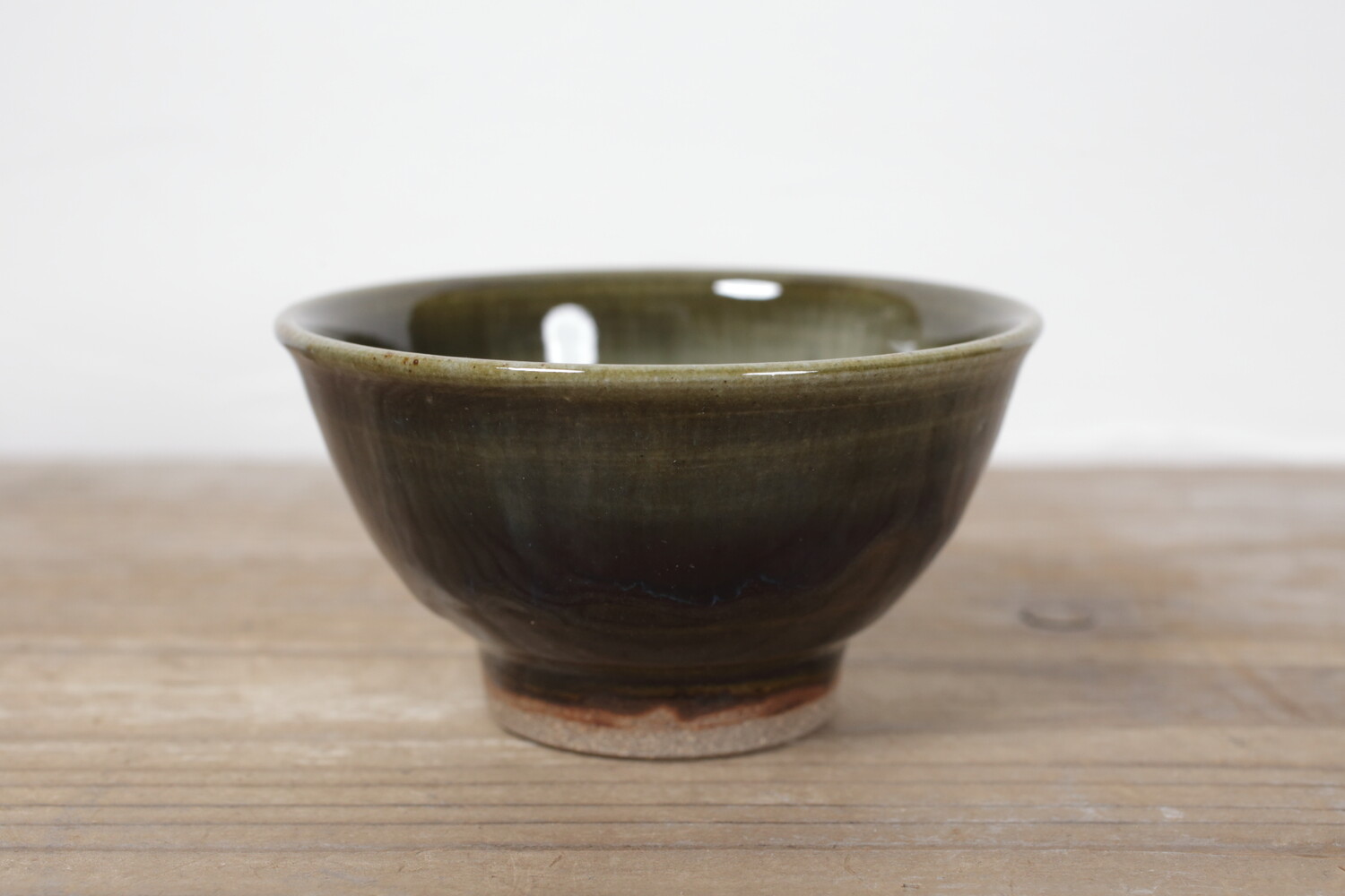 茶色い飴釉と藍色と深緑を混ぜたような奥行きのある呉須釉を混ぜたことで、とても深い色合いになっている飯碗。内側の釉薬の色合いともとてもバランスがいいですね。