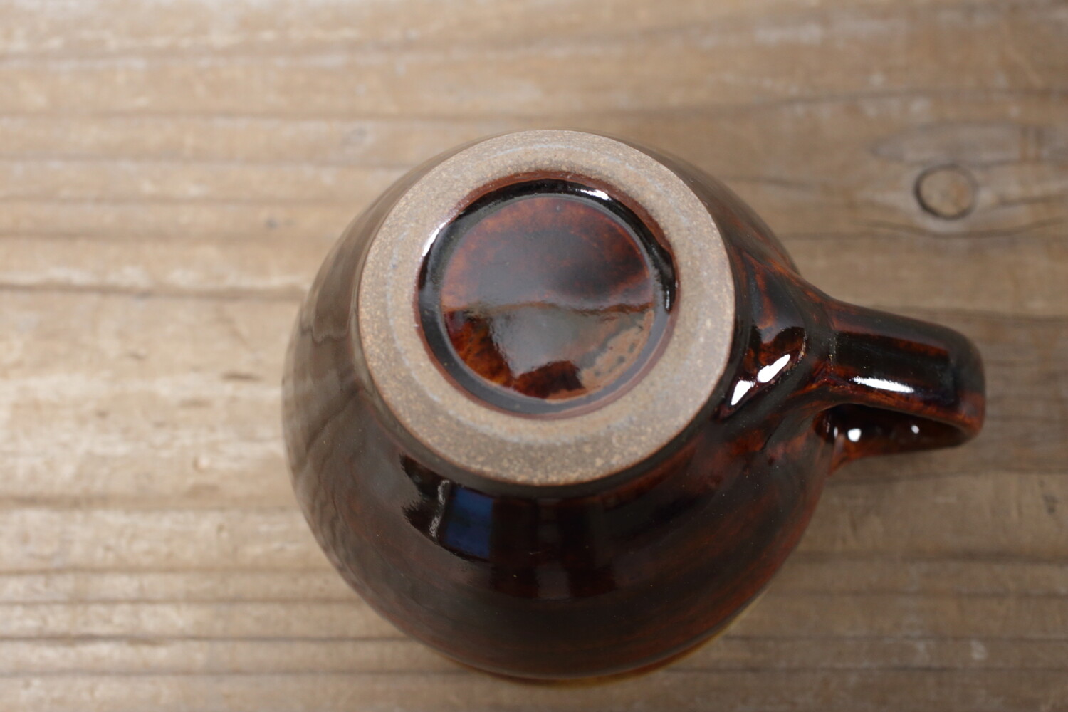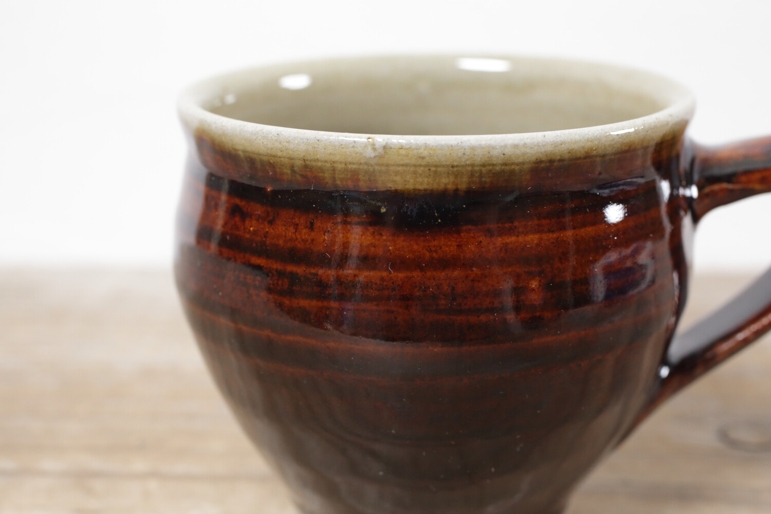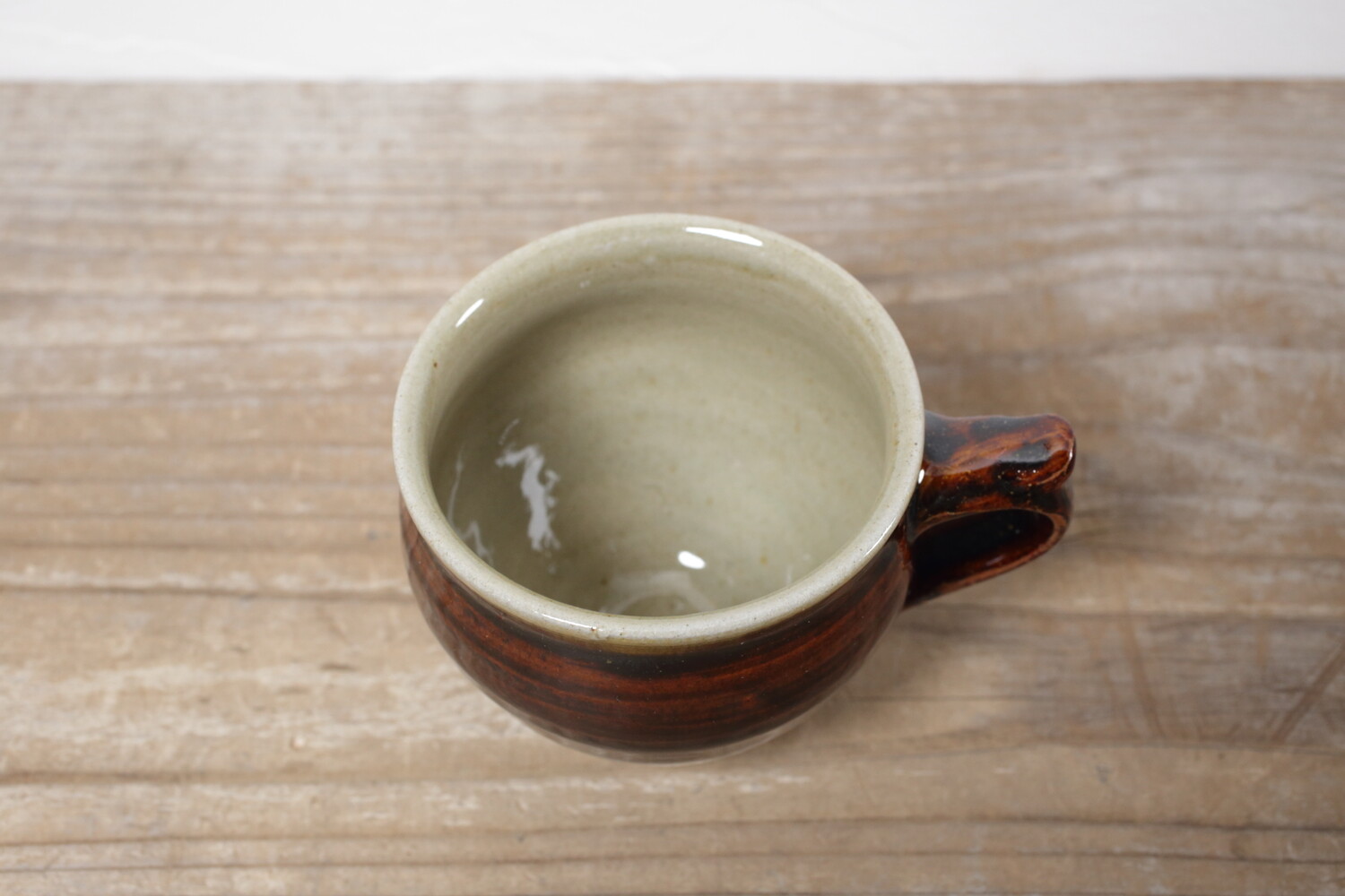 直径9.5cmほどのマグカップは特大と名付けられていますが、8分目ほどの計量で270mlと大サイズほどの大きさです。外側と内側の釉薬の色味が調和していて気持ちがいいですね。