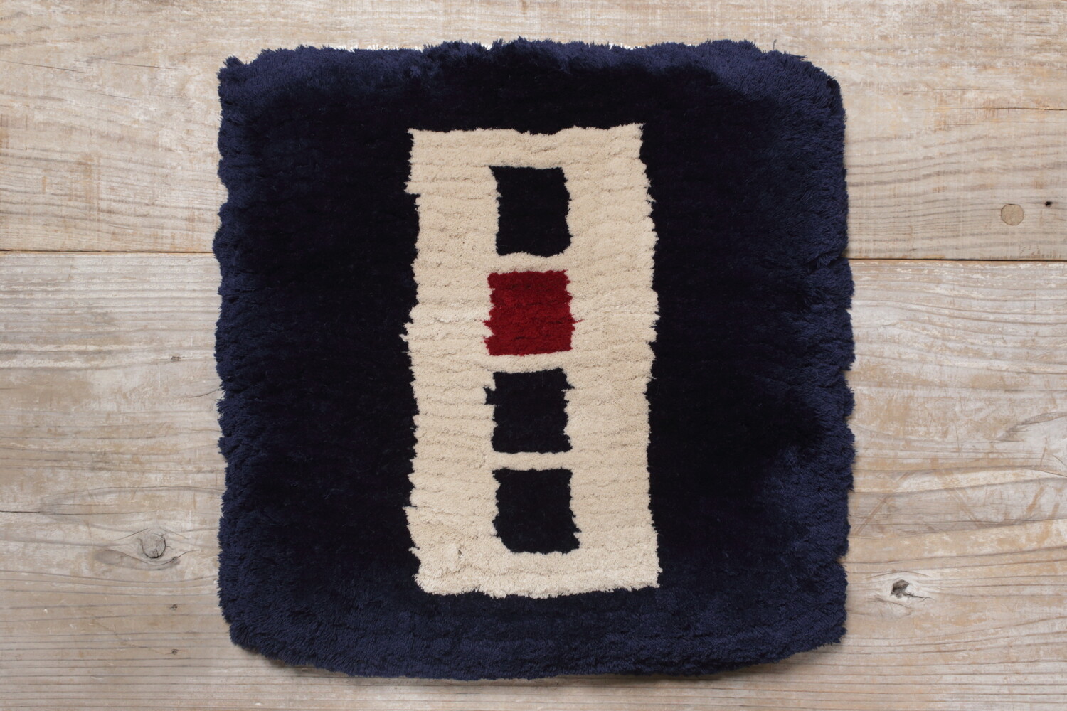 佐藤さんの糸を無駄にしないという考えに基づき、他のノッティングの作家さんと比較すると糸を切り込み過ぎず毛足が長いのが特徴です。そのためどうしても毛足が短いノッティングより毛足が倒れやすいのですが、圧倒的な座り心地のよさは一度座って頂くと皆さん驚かれるほどです。糸はウール100%ですので、しっとりとした座り心地です。手で糸の向きと反対方向にならして頂くと柄に対して毛並みが整い綺麗になります。コロコロなどをお使い頂いてもいいでしょう。通常お洗濯は必要ありませんが、飲み物をこぼしてしまったなど汚れが気になるという方は、薄めた中性洗剤で手揉み洗いをした後、しっかりと乾かして下さい。乾かした後はウールのため毛玉が出ますので、コロコロ等で取り除いてください。